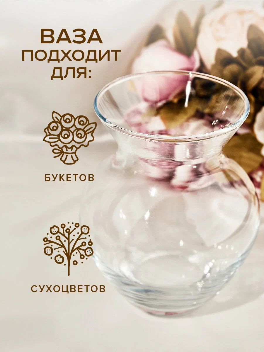 Компактная стеклянная ваза Pasabahce Botanica — отличный выбор для оформления небольших букетов и композиций из сухоцветов. Классическая форма с расширением кверху подчёркивает естественную красоту цветов и добавляет уюта в интерьер.