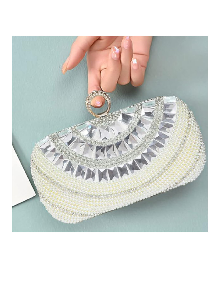 Роскошный вечерний клатч, украшенный бисером, стразами и зеркальными элементами, станет главным акцентом вашего нарядного образа. Сумочка выполнена в сияющем дизайне с кольцом-держателем и золотистой цепочкой — её можно носить в руке или на плече. Подходит для торжеств, свадеб, выпускных и других праздничных мероприятий.
