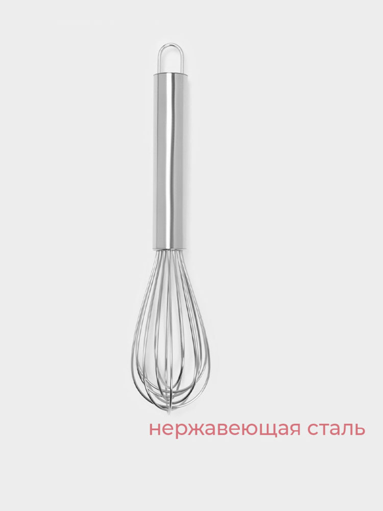 Венчик поможет быстро взбить крем из белков и жирных сливок для украшения кондитерских изделий, а также перемешать ингредиенты для приготовления пышных оладий.