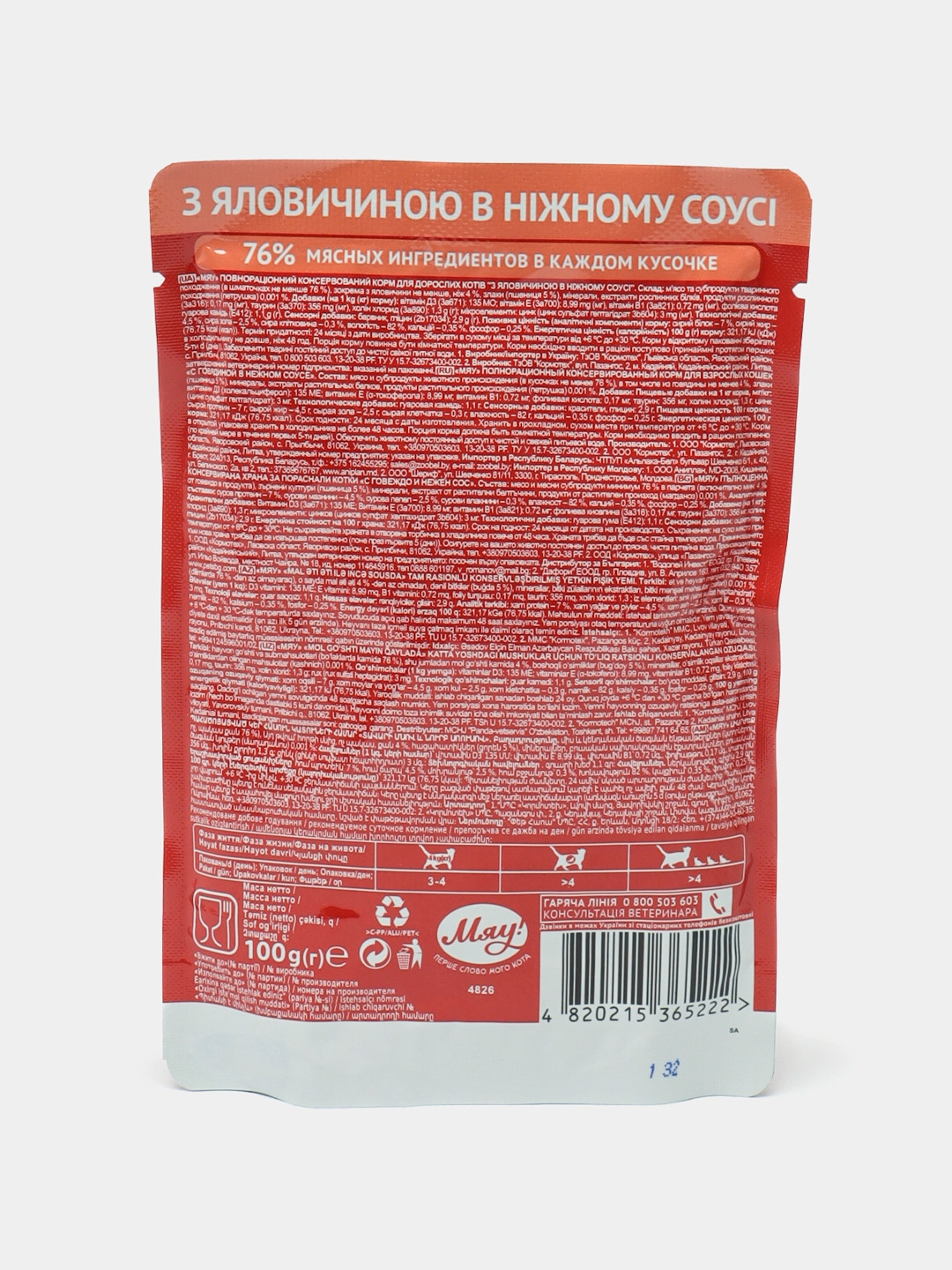 Корм в открытой упаковке хранить в холодильнике не более 48 часов.