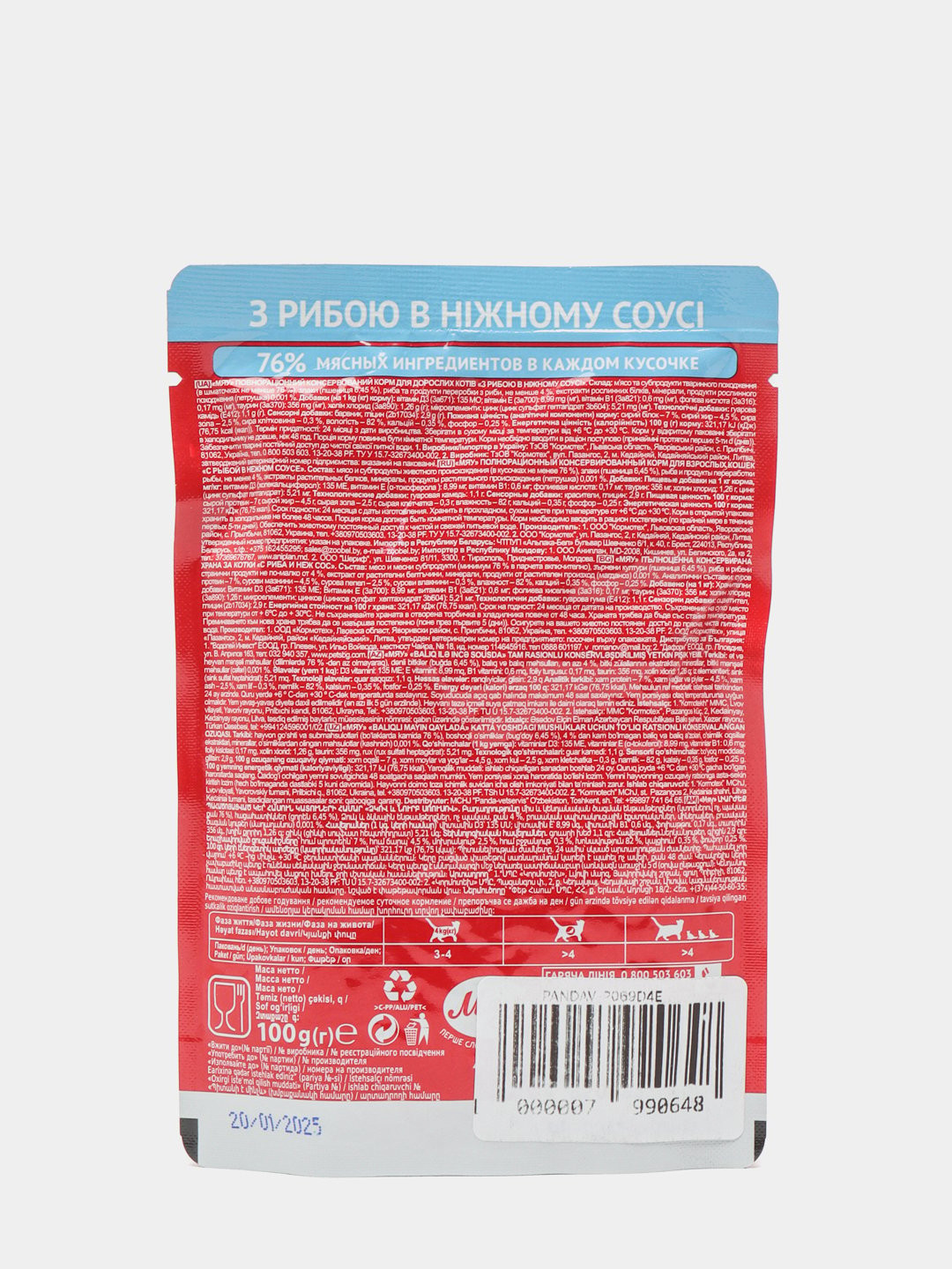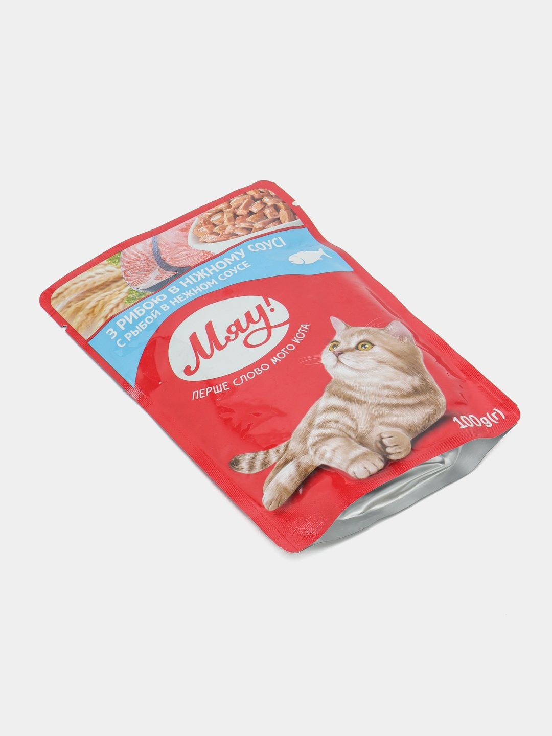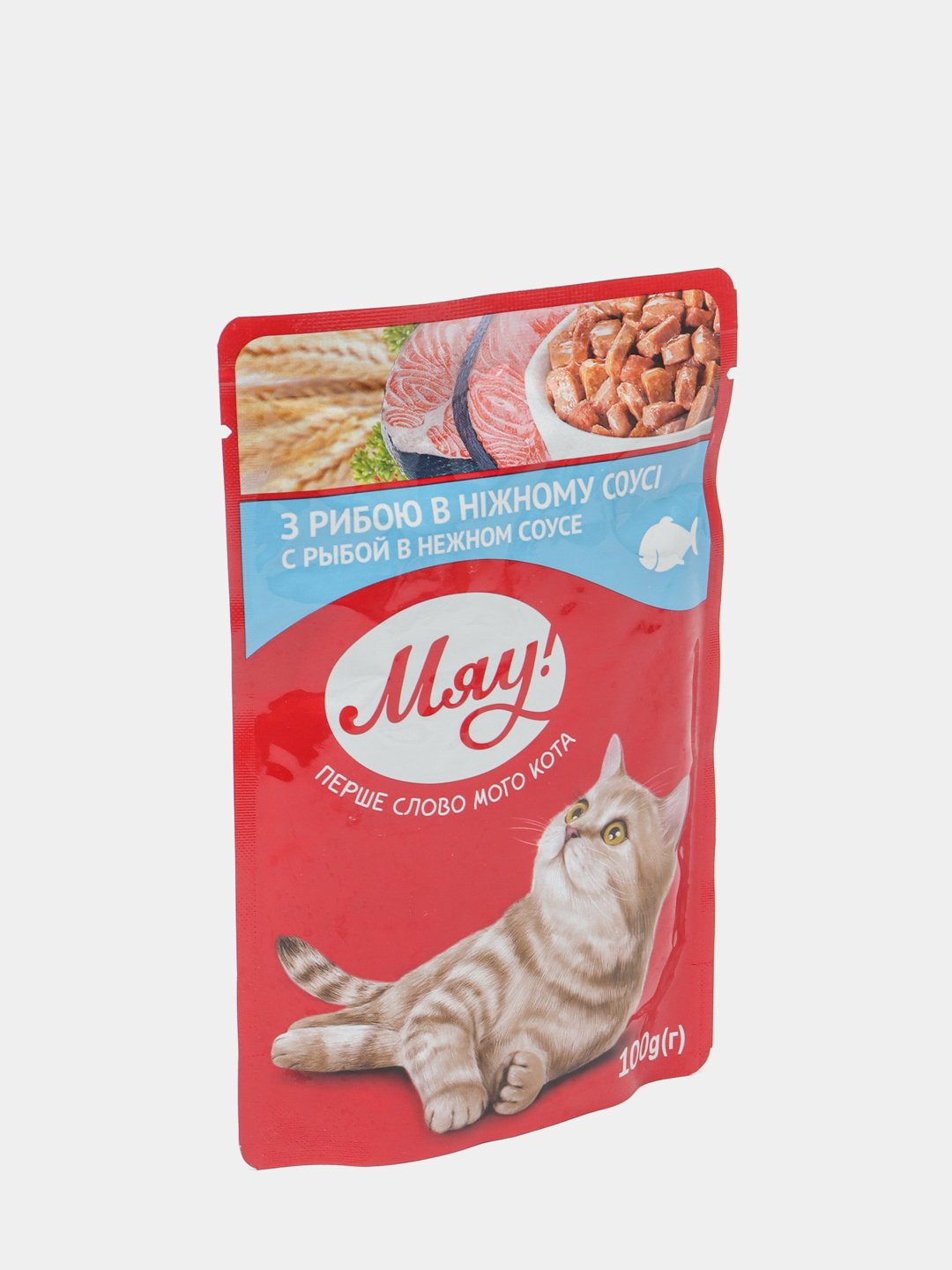 Влажный корм для кошек, МЯУ, пауч с рыбой в нежном соусе, 100 гр