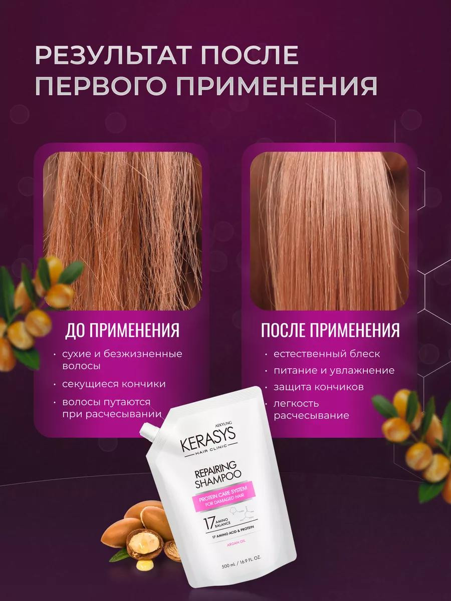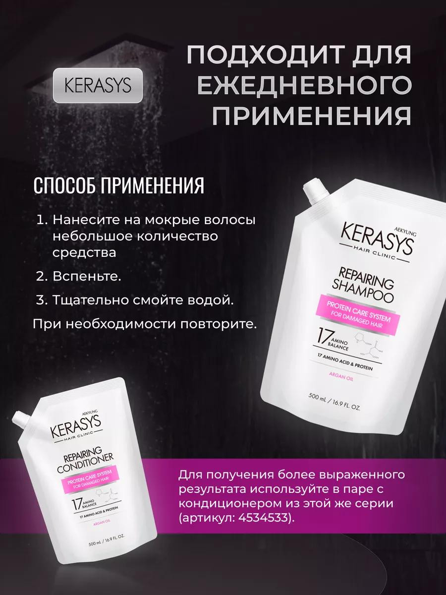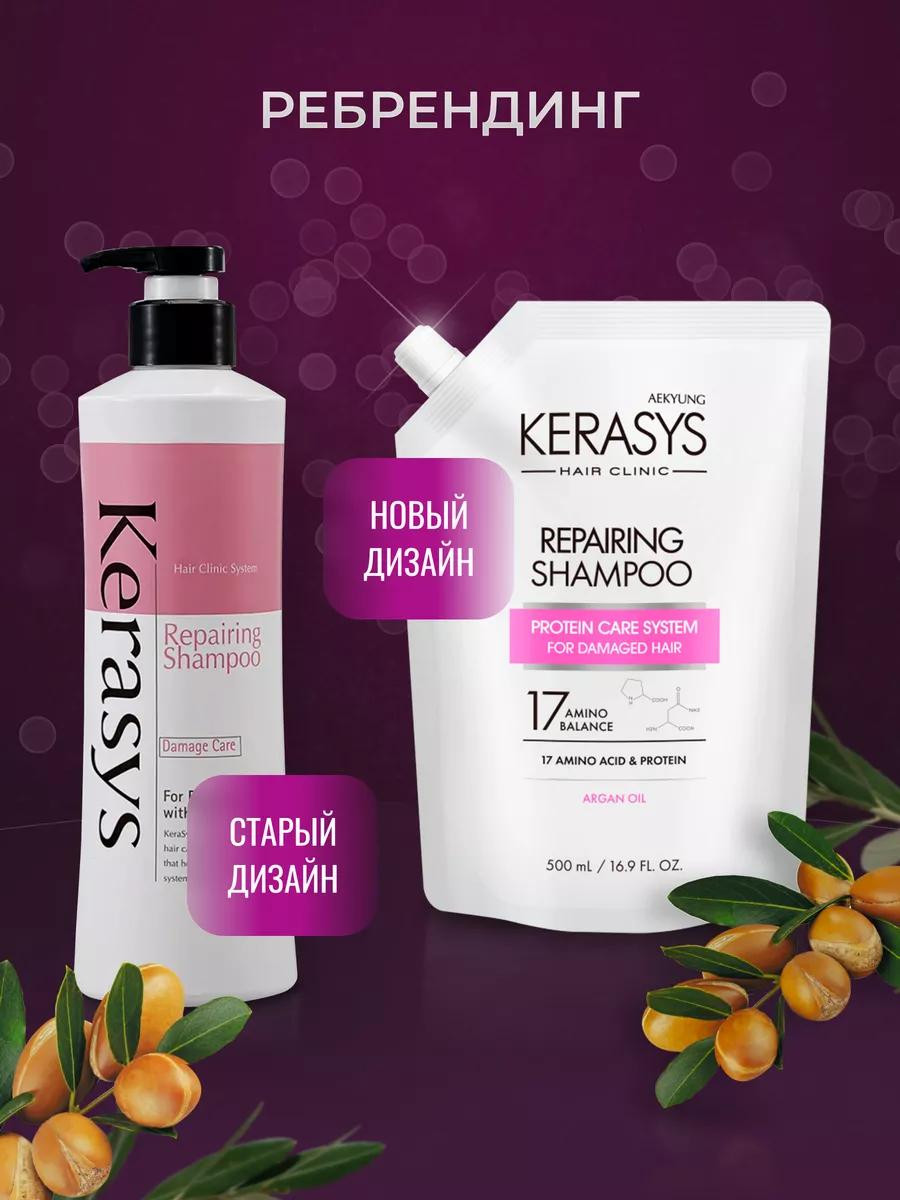 KERASYS Hair Clinic System Damage Care Repairing Shampoo - восстанавливающий шампунь для поврежденных волос с секущимися концами. Эффективная формула для восстановления волос, поврежденных частым химическим, тепловым и солнечным воздействием.