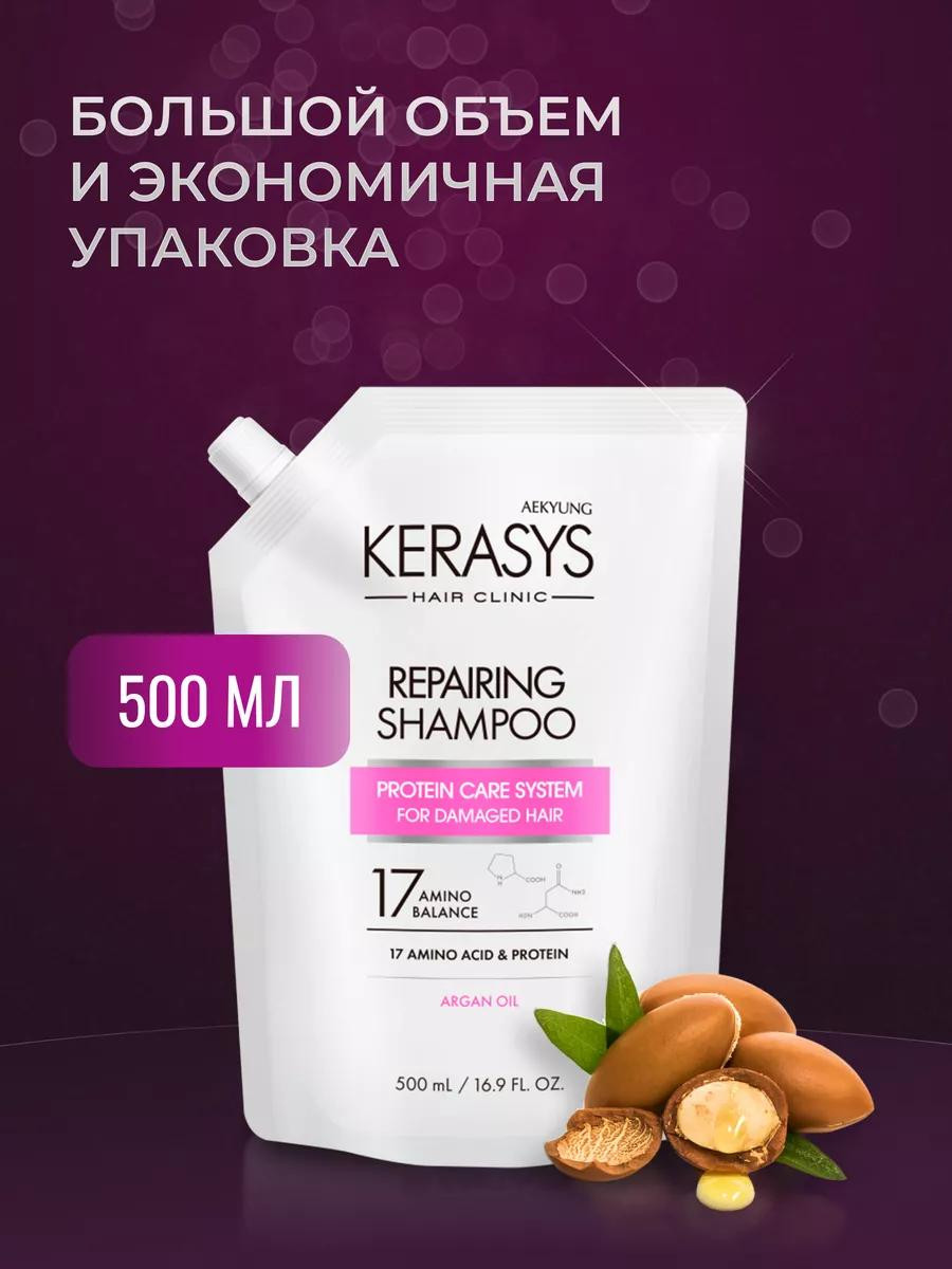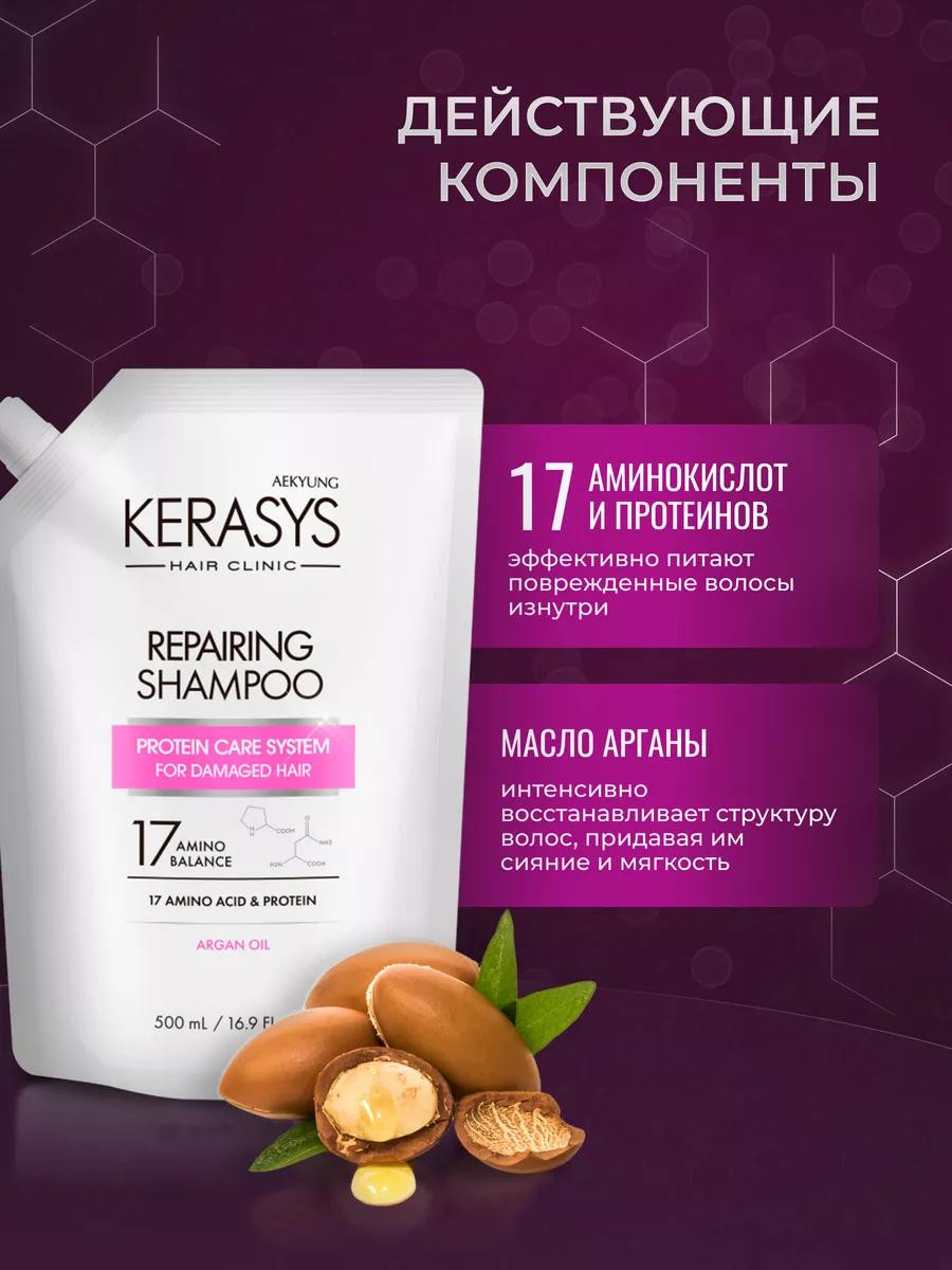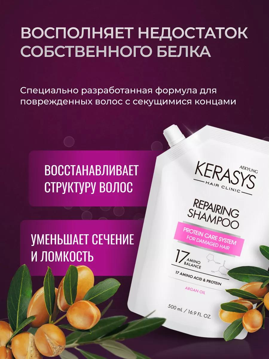 KERASYS Hair Clinic System Damage Care Repairing Shampoo - восстанавливающий шампунь для поврежденных волос с секущимися концами. Эффективная формула для восстановления волос, поврежденных частым химическим, тепловым и солнечным воздействием.