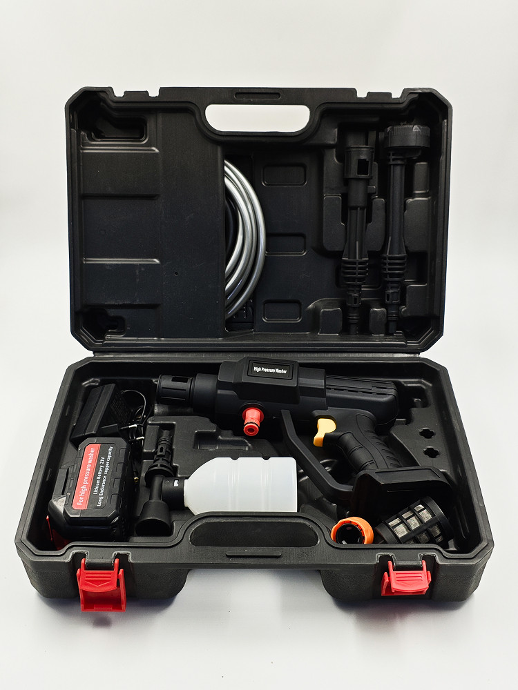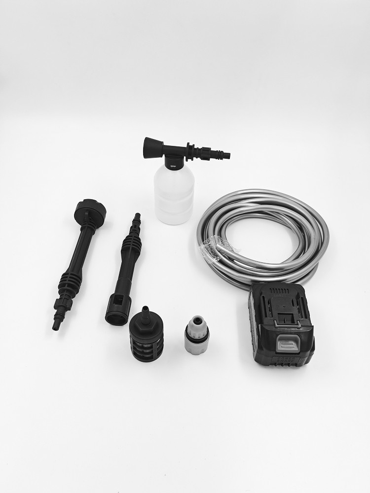 Комплектация: Мойщик, аккумулятор, зарядное устройство, шланг, насадки