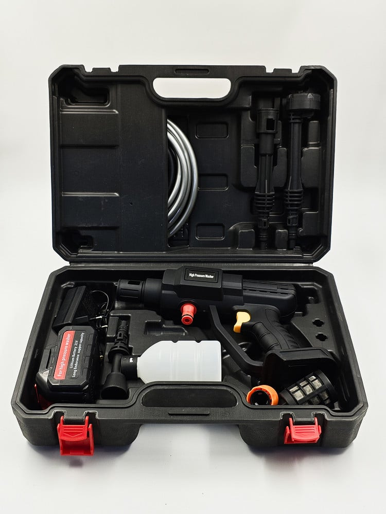 Портативный высоконапорный мойщик идеально подходит для быстрой и эффективной мойки различных поверхностей: от автомобилей до садовых объектов. Удобный и легкий в использовании, этот мойщик обеспечит вам удобство в очистке с минимальными усилиями. В комплект входит все необходимое для работы: шланг, насадки и аккумулятор, что делает его отличным выбором для личного пользования.