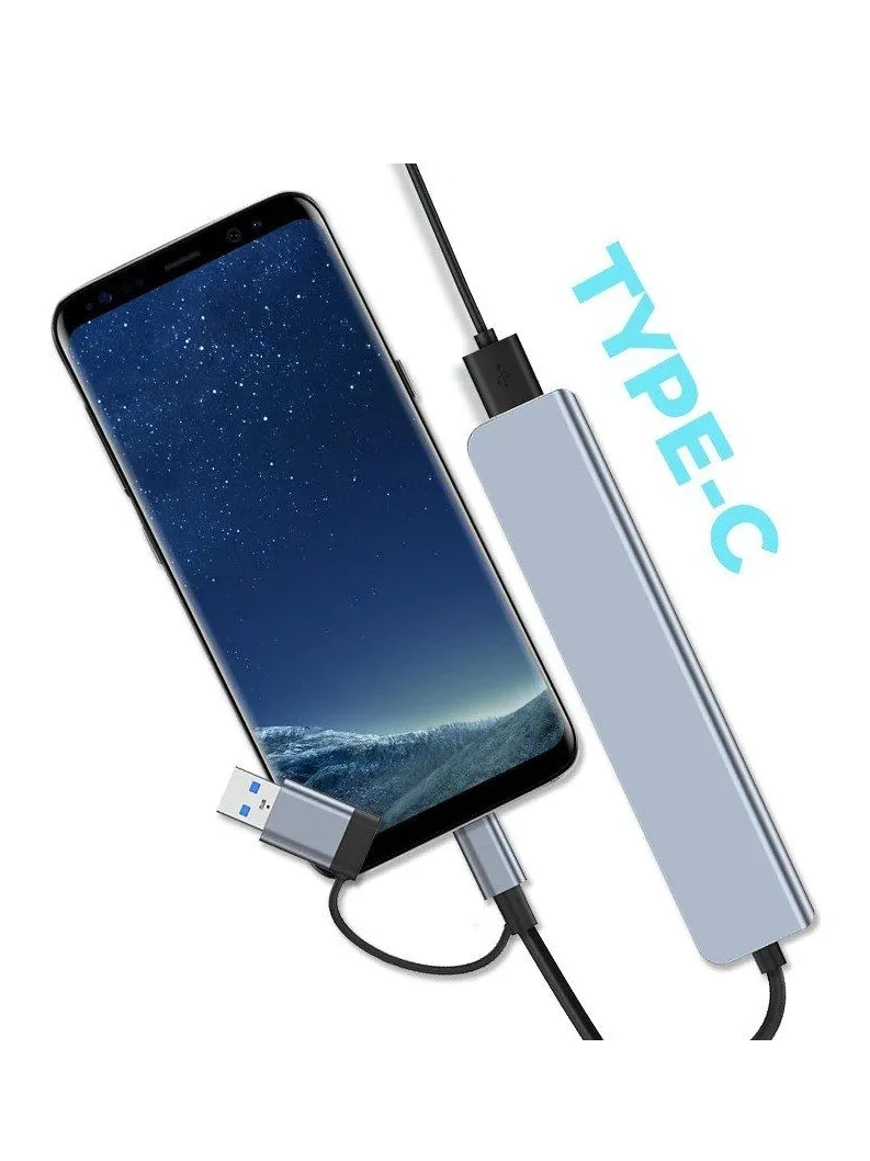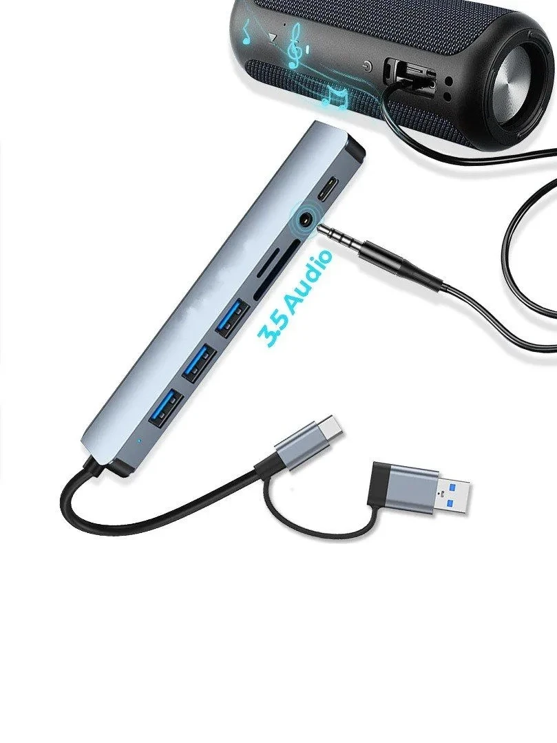 Компактный и многофункциональный USB-хаб, который значительно расширяет возможности подключения устройств к компьютеру или ноутбуку. Разветвитель оснащен разъемами USB 3.0, USB Type-C, слотом для карт памяти SD и MicroSD, а также аудиоразъемом. Корпус устройства выполнен из прочного алюминиевого сплава, что обеспечивает долгий срок службы и защиту от повреждений.