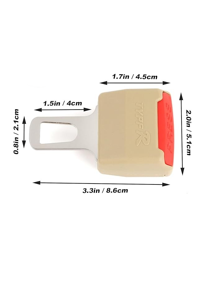 Эти заглушки для ремней безопасности предназначены для автомобилей, чтобы предотвратить звуковые сигналы, предупреждающие о непристёгнутом ремне. Они выполнены из прочного металла и пластика бежевого цвета с красной кнопкой «PRESS» для удобства использования. На корпусе имеется логотип "Type R", добавляющий стильный акцент. Заглушки легко устанавливаются и подходят для большинства стандартных автомобильных ремней безопасности.