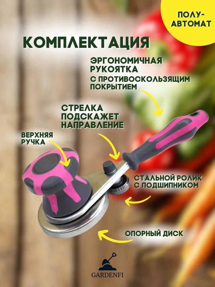 Данная машинка для закатки предельно простая в использовании. Для закрутки жестяной крышки нужно сделать всего 6-7 оборотов в одну сторону, а затем в и можно переходить к следующей банке. Важно – после использования машинки протирать ролик и мелкие детали от загрязнений. Предназначена для герметичной укупорки стеклянных банок металлическими крышками при консервировании, в домашних условиях.