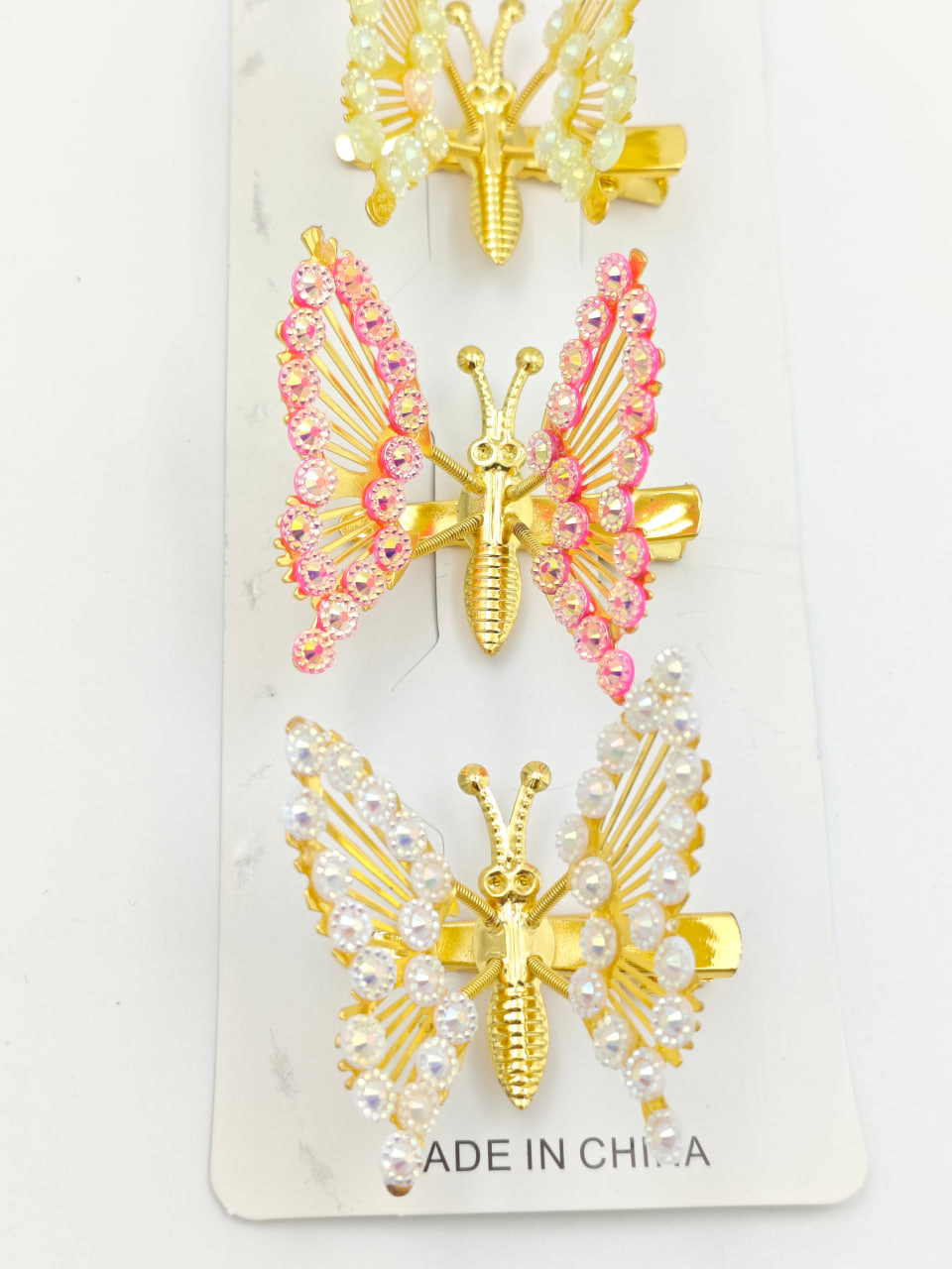 Элегантная заколка в форме бабочки, украшенная блестящими камнями, станет стильным акцентом в вашем образе.
