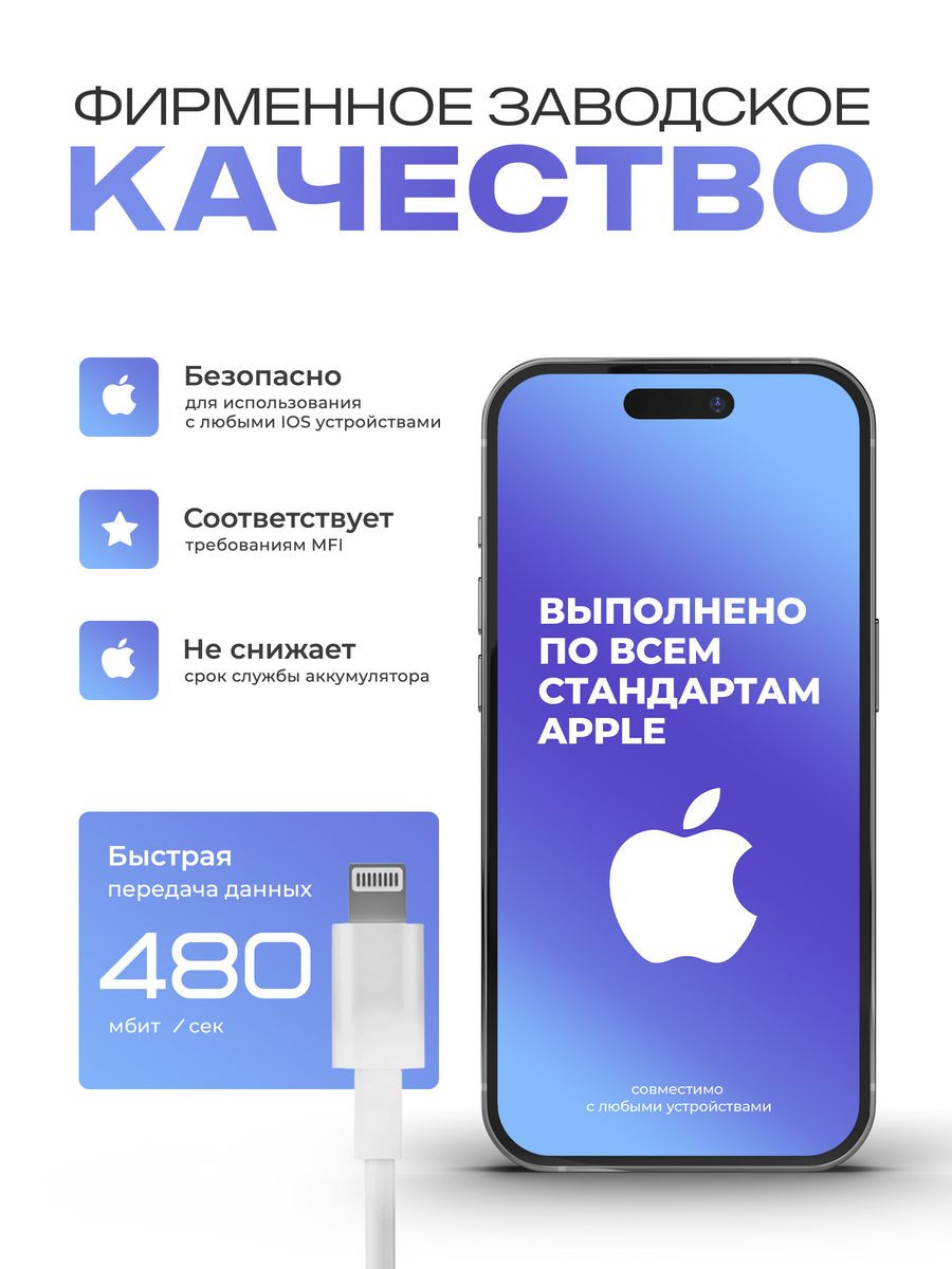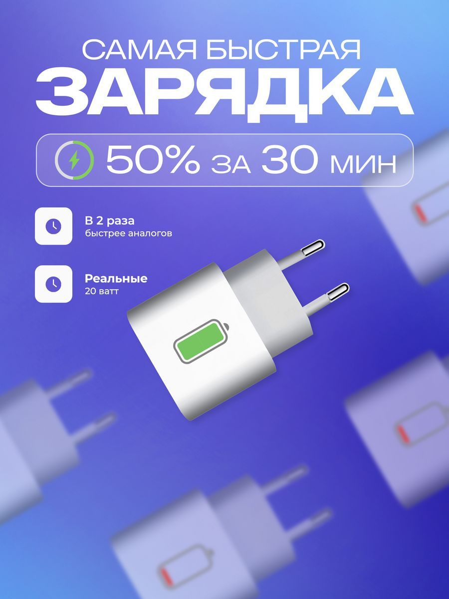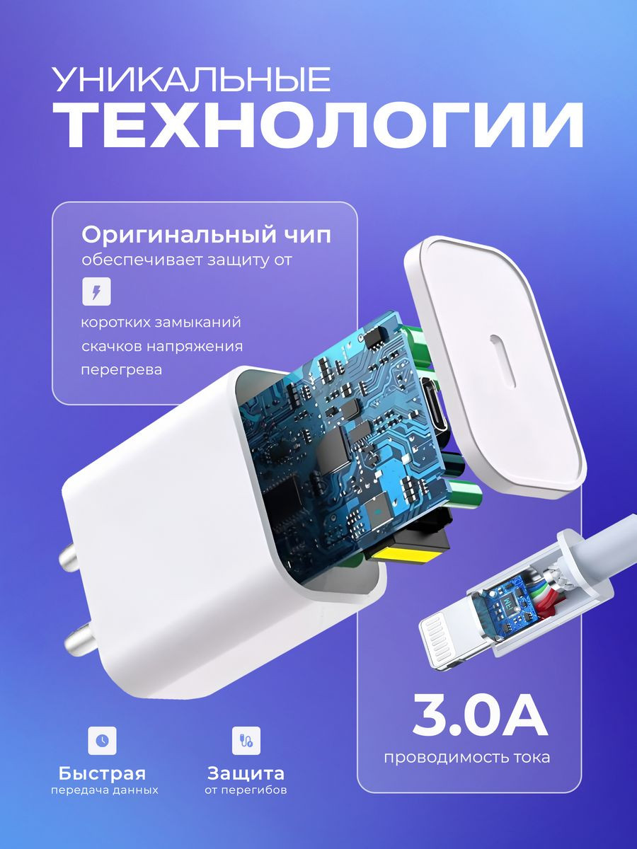 Зарядка для IPhone с кабелем Type-C to Lightning и блоком питания на 20 Ватт — универсальное устройство, подходящее для большинства гаджетов Apple, в том числе планшетов, умных часов, наушников и другой техники с разъемом Lightning. Нашу быструю айфоновскую зарядку особенно оценят те, кому важно всегда и везде оставаться на связи. Благодаря современной технологии скоростной подзарядки Power Delivery, зарядка аккумулятора смартфона от 1% до 50% занимает всего 30 минут (работает на Айфон 8 и выше). Сетевое зарядное устройство позволяет не переживать за безопасность его применения, так как оно оснащено 3-мя встроенными уровнями защиты от коротких замыканий, скачков напряжения и перегрева. Длинный провод (1 метр) с разъемом USB Type C (он же USB-C) на Lightning удобен в использовании дома, в машине, офисе или любом другом помещении. Многофункциональная зарядка выполнена из качественных ударопрочных материалов, выдерживает многочисленные падения с высоты, перегибания и перекручивания. Благодаря оригинальным компонентам, кабель позволяет переносить данные с телефона на компьютер или ноутбук со скоростью до 480 Мб/с. Блочок питания мощностью 20W имеет стандартную евровилку и подходит для устройств других брендов на Андроид (Samsung, Xiaomi, Hoco, Huawei, Realme). Шнур Тайп Си удобно использовать через повербанк в поездках и путешествиях. Приобретайте действительной мощный зарядник и забудьте о долгих посиделках у розетки! С нашим комплектом аксессуаров, состоящим из прочного штекера Лайтнинг и адаптера на 20 Вт, вы сэкономите не только время, но и деньги. Совместимость: все версии iPhone 14, 13 Pro, 13 Pro Max, 13 mini (мини), 13, 12 Pro, 12 Max, 12 mini, 12, 11, 11 Про Макс, SE, XS, XS Max, XR, X, 10, Айфон 10, 8 Plus, 8, 7, 7 Плюс, 6, 6s Plus, 5s, 5c, 5. Так же для iPad Air mini, Айпад и AirPods, смарт часов Apple Watch.