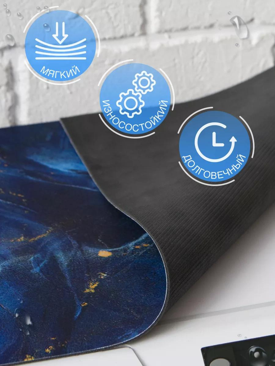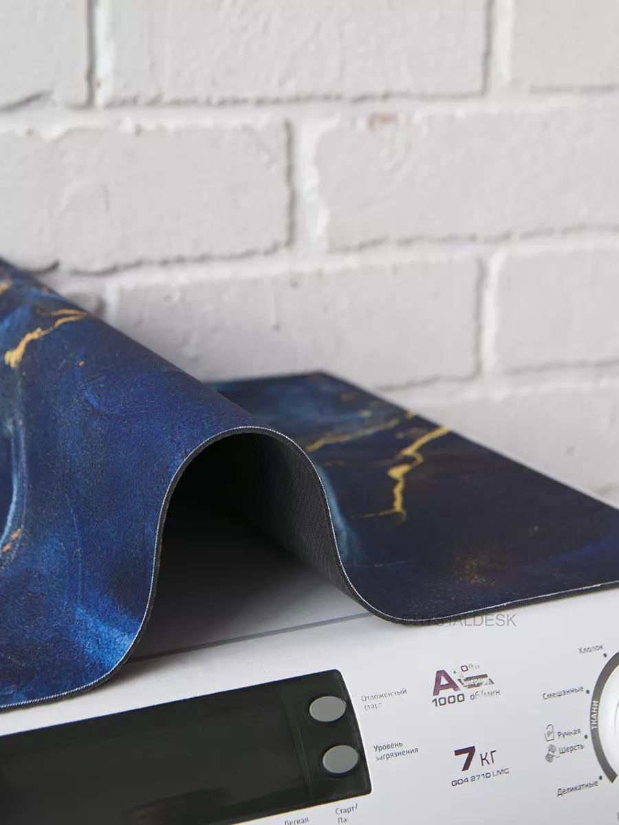Описание товара: Стильный и функциональный защитный коврик для стиральной машины с уникальным дизайном в синих и золотых тонах. Он не только защищает поверхность вашей техники от загрязнений и повреждений, но и добавляет изысканный акцент в интерьер ванной или прачечной. Этот коврик идеально подходит для защиты от воды и других воздействий, легко чистится и долго служит.