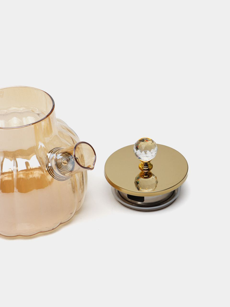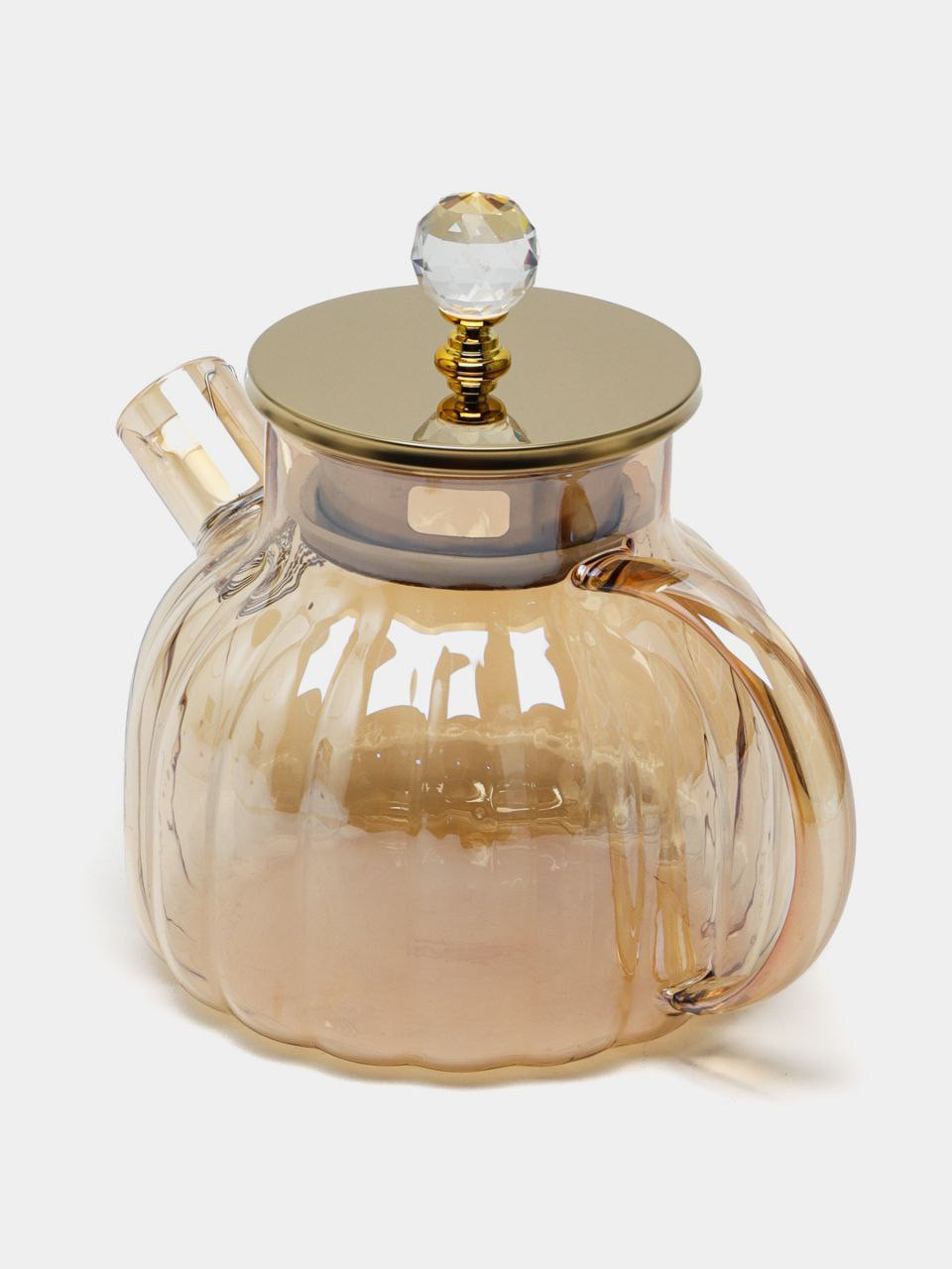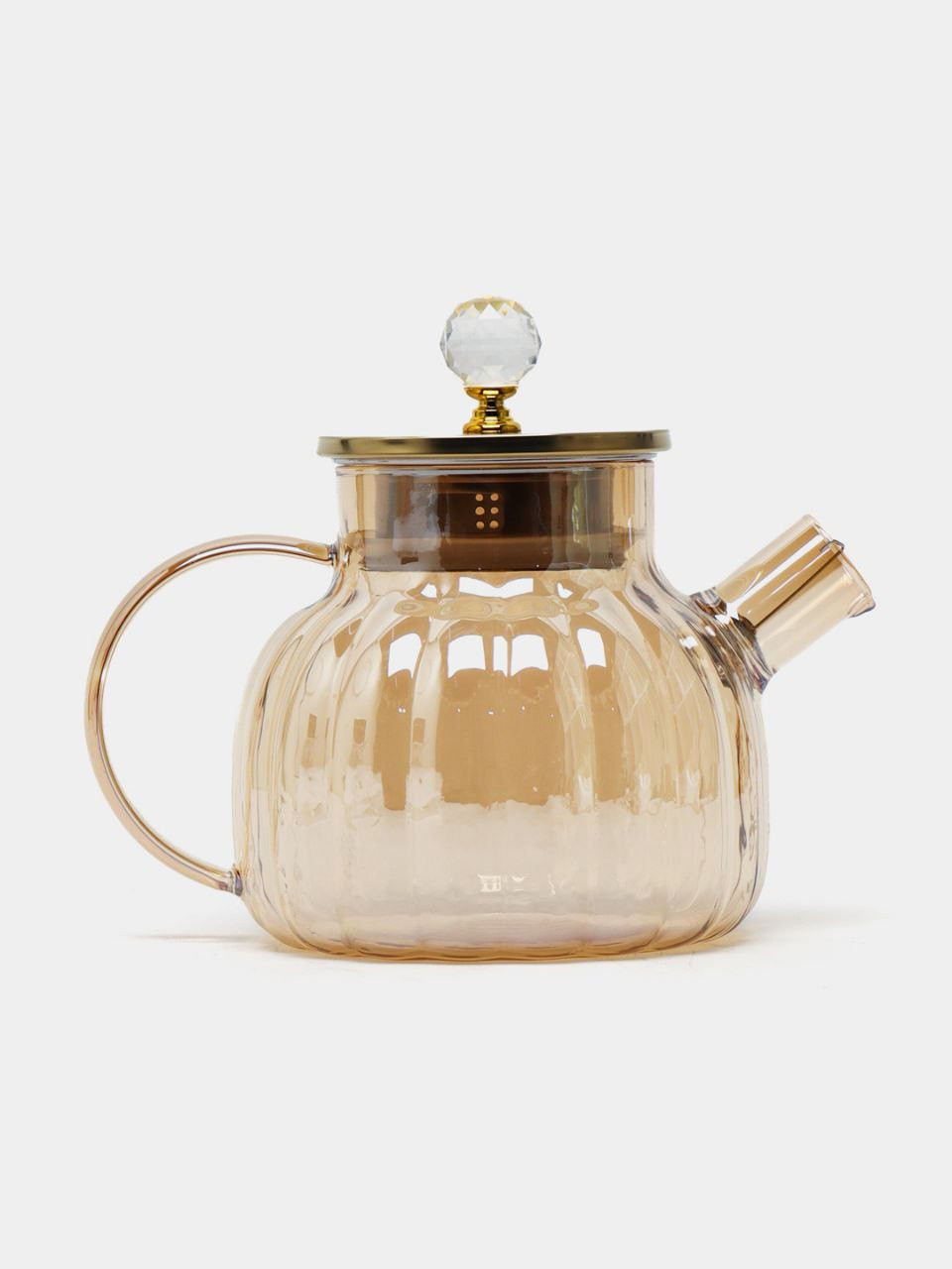 Элегантный заварочный чайник объёмом 1 литр выполнен из прочного термостойкого стекла. Резной корпус, золотистая крышка и хрустальная ручка придают ему особый шарм. Подходит для ежедневного использования и станет украшением любой сервировки.