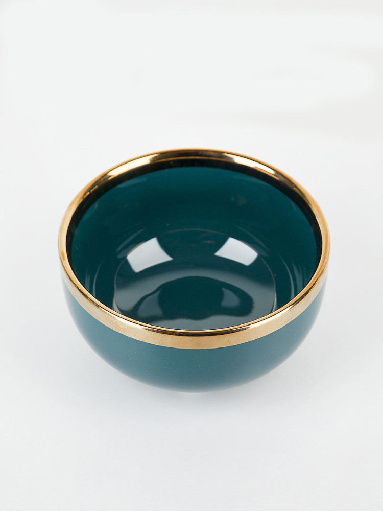 Эта изысканная пиала сочетает в себе элегантность и практичность. Её глубокий тёмно-зелёный цвет создает ощущение утончённости и гармонии, а изящный золотой ободок придаёт ей роскошный вид. Компактные размеры (11 см × 6 см) делают её удобной для подачи десертов, соусов, орехов или небольших закусок. Гладкая глянцевая поверхность подчёркивает качество материала и облегчает уход за посудой. Такая пиала станет прекрасным дополнением к вашему сервированному столу и идеально впишется как в классический, так и в современный интерьер.
