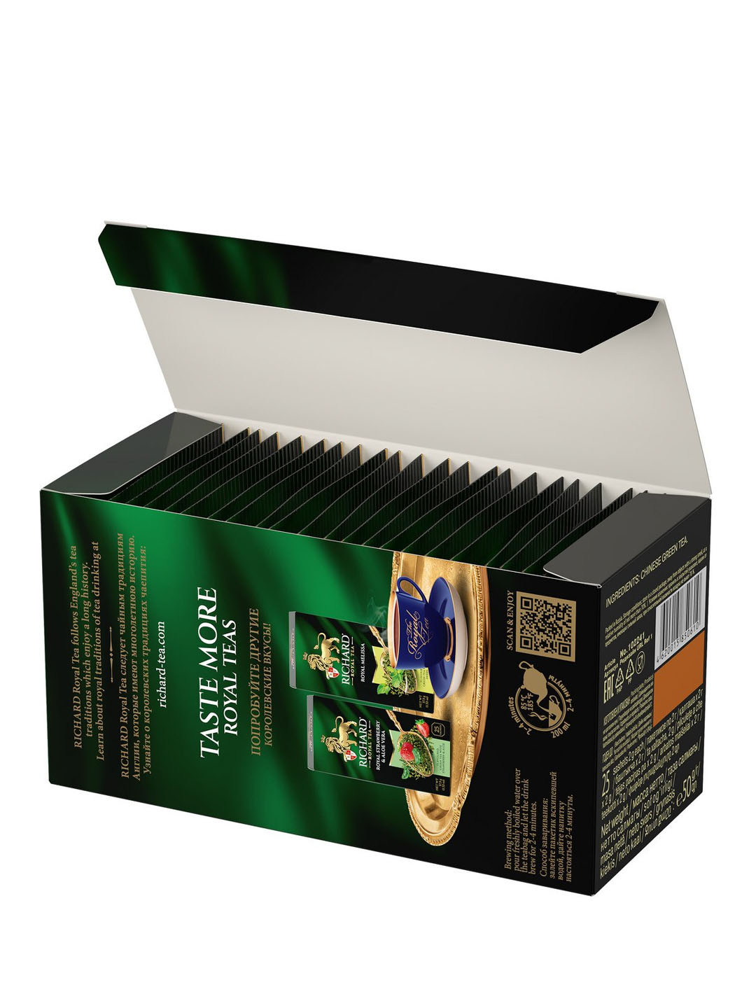 Richard Royal Green — это освежающий зелёный чай премиального качества. Изготовлен из отборных чайных листьев, собранных в лучших регионах выращивания зелёного чая. Обладает чистым, мягким вкусом с лёгкой природной сладостью и тонким травяным ароматом. Подходит для ежедневного употребления и идеален в любое время дня. Упакован в индивидуальные саше для сохранения аромата и удобства заваривания.