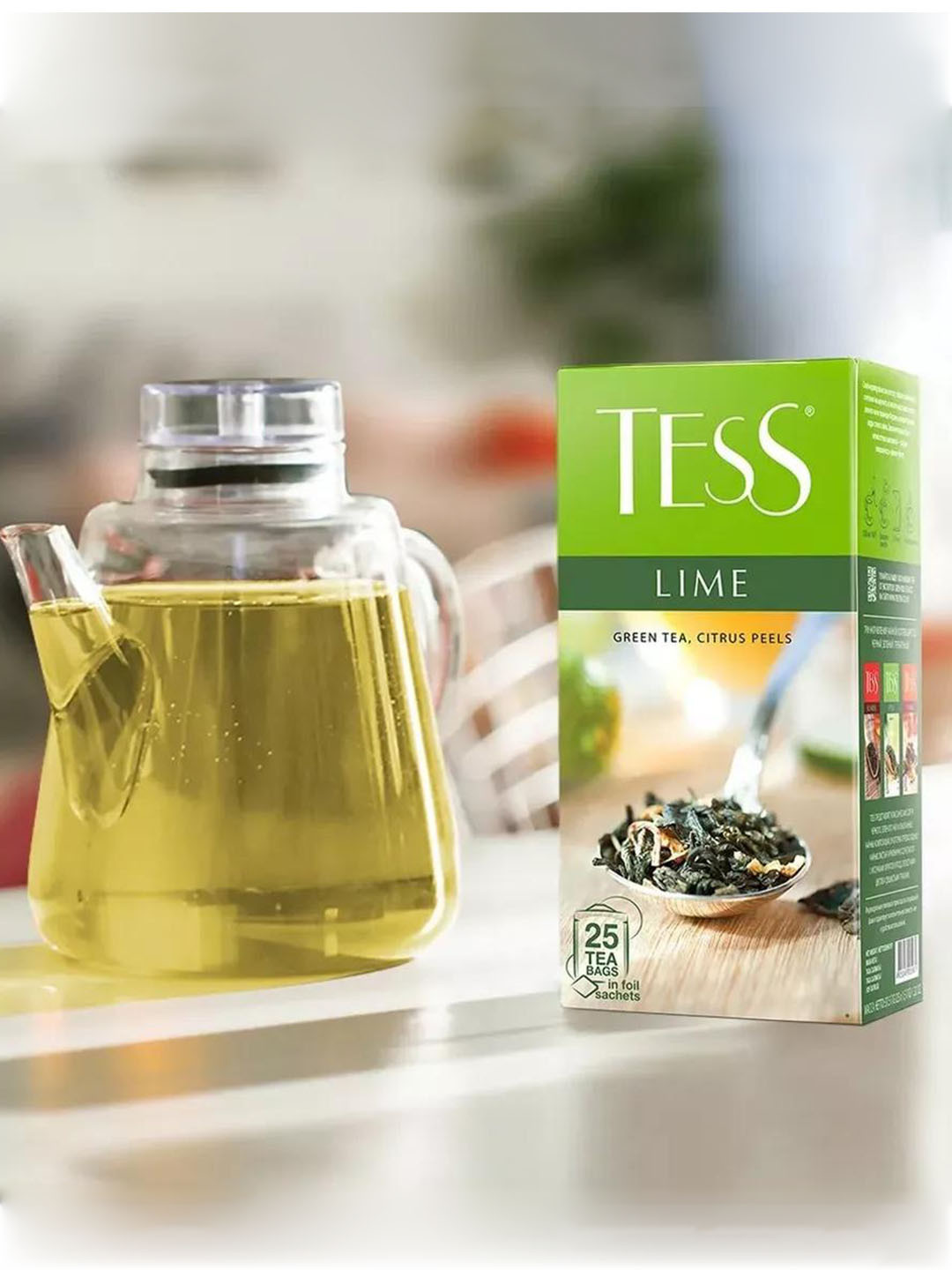 Чай TESS Lime — это освежающий зеленый чай с натуральной цедрой цитрусовых, придающей напитку яркий и бодрящий вкус. Благодаря гармоничному сочетанию отборного зеленого чая и цитрусовой свежести, этот напиток отлично подходит для утреннего заряда энергии или дневной паузы. Пакетики упакованы в индивидуальные фольгированные саше, что сохраняет вкус, аромат и свежесть чая до последнего пакетика.