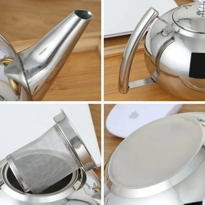 Чайник с насадкой для заваривания - Большая насадка для заваривания из нержавеющей стали с очень тонкими отверстиями, изготовленная из пищевой нержавеющей стали, позволяет заваривать чай в полной мере, придавая ему больше вкуса и аромата. Насадка для заваривания из нержавеющей стали легко снимается и моется.