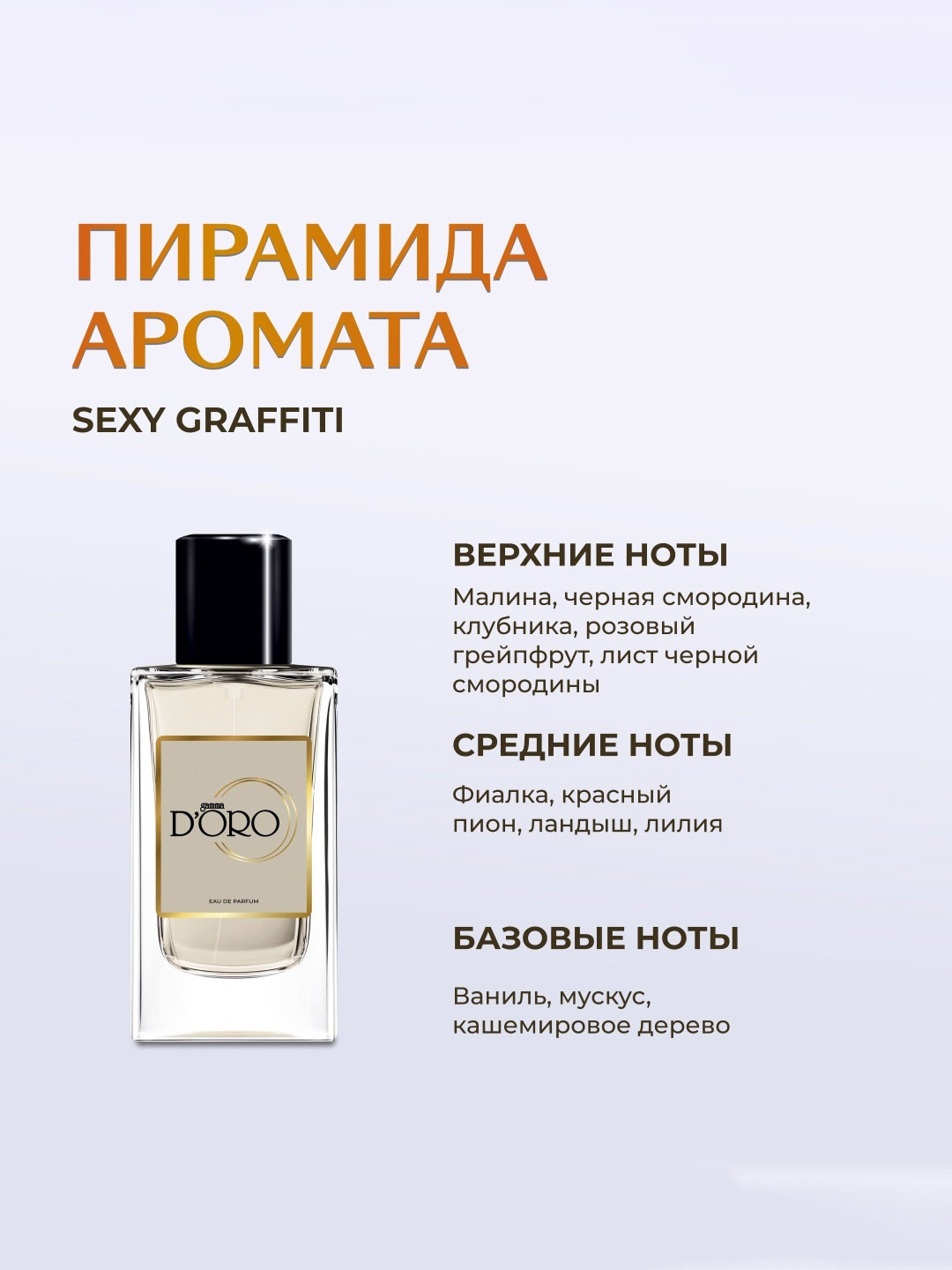 D'ORO WOMEN — это бодрящий и игривый аромат, наполненный летним настроением. Сочные ягоды, освежающие цитрусы и нежные цветочные ноты создают гармоничное сочетание, которое идеально подойдет для энергичных женщин, наслаждающихся жизнью. Этот аромат подчеркивает вашу естественную привлекательность и заряжает позитивной энергией.