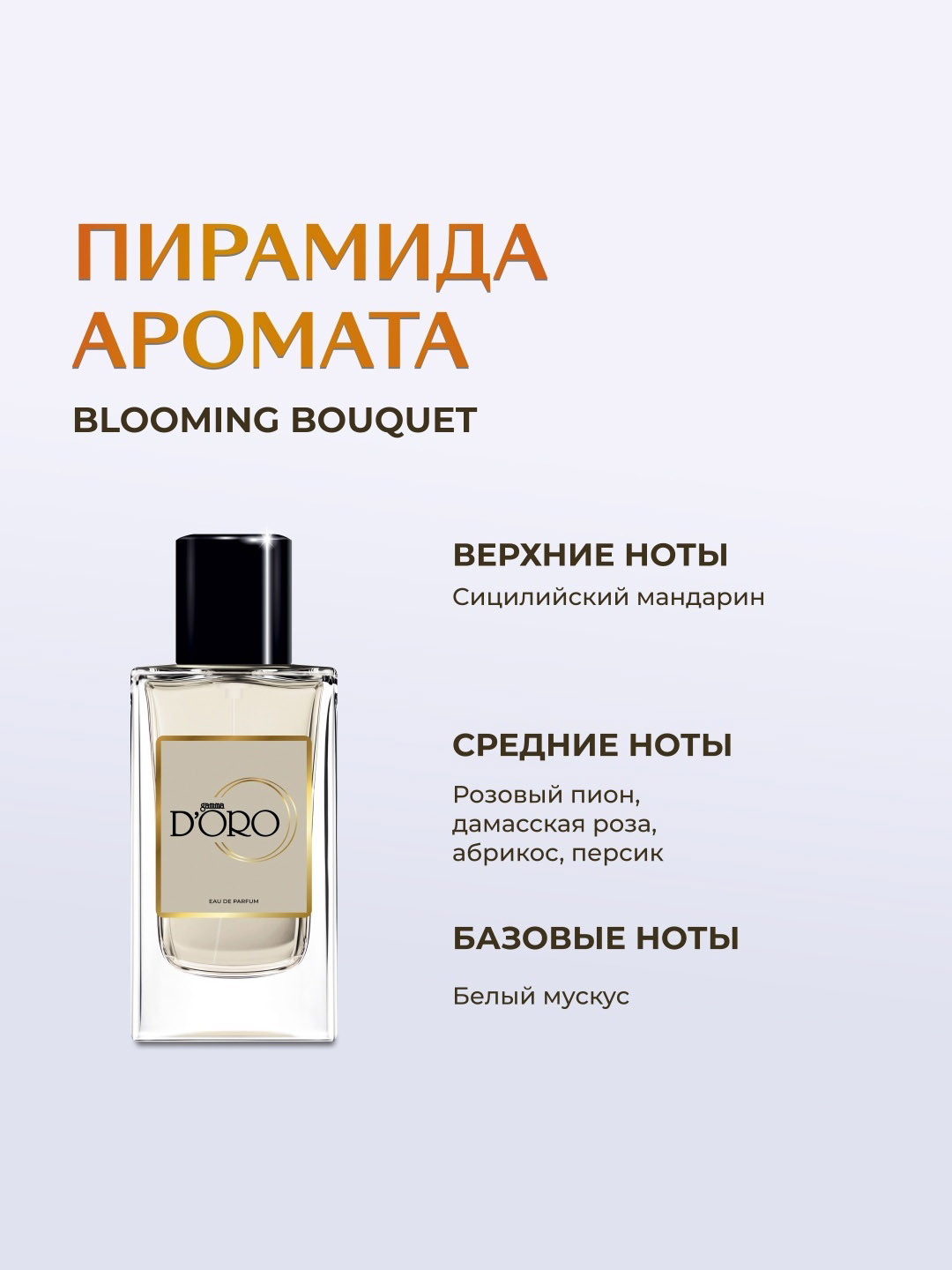 D'ORO WOMEN — это изысканный и легкий аромат, созданный для женщин, которые ценят элегантность и нежность. Его цветочная композиция с тонкими фруктовыми оттенками дарит ощущение свежести и утонченности. Подходит для повседневного использования и подчеркивает женственность своей обладательницы.