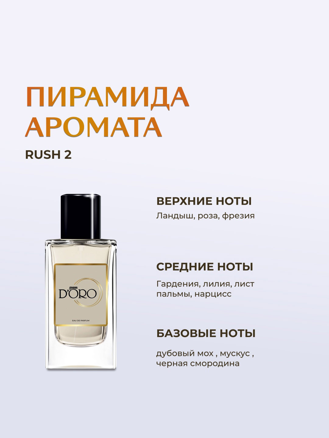 D'ORO WOMEN — это динамичный, чувственный и энергичный аромат, созданный для современных женщин, которые любят свободу и движение. Легкие цветочные ноты сочетаются с древесными аккордами, создавая гармоничный и утонченный образ. Аромат идеально подходит для повседневного ношения и подчеркивает индивидуальность своей обладательницы.