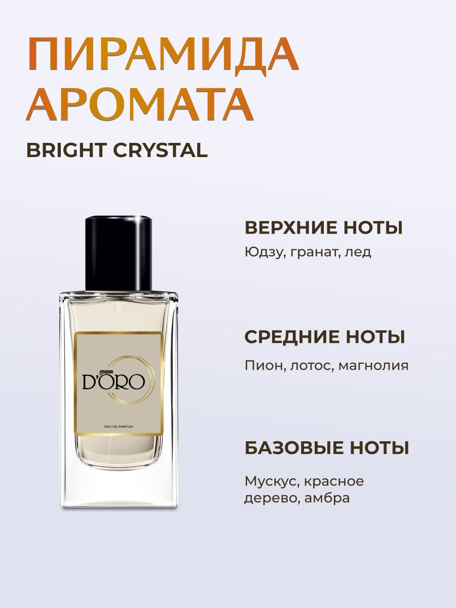 "Versace Bright Crystal — это великолепный аромат, который воплощает идею нежности, утончённости и свежести. Яркий и женственный, он создан для современных женщин, которые ценят баланс между элегантностью и лёгкостью, красотой и энергией. Этот аромат открывает мир утренней росы, согретой лучами солнца, и романтичных прогулок по цветущим садам. Парфюм создан мастером парфюмерии Альберто Морильясом и славится своей гармоничной структурой, которая идеально сбалансирована для универсального Bright Crystal — это не просто парфюм, а настоящее украшение образа.