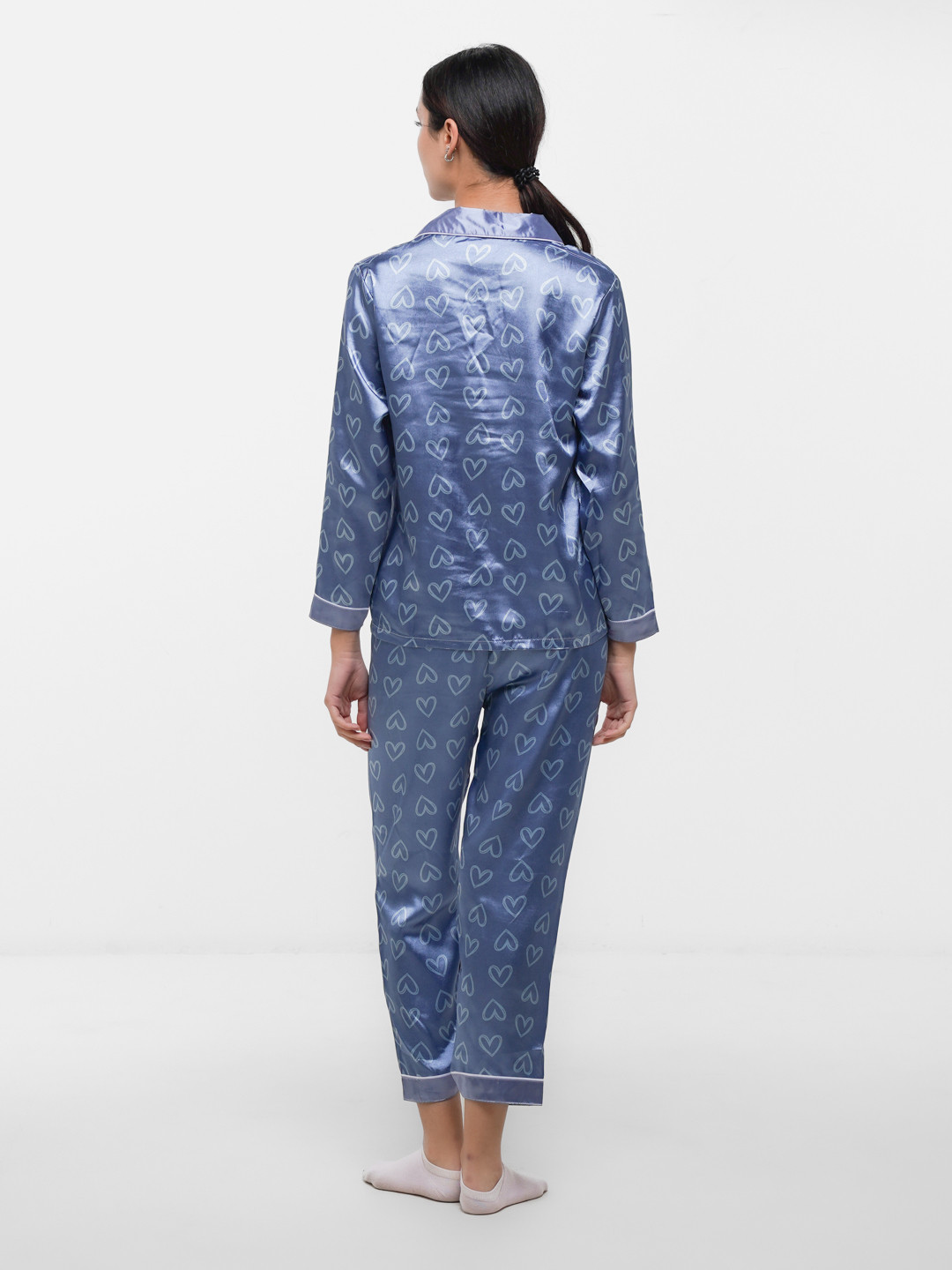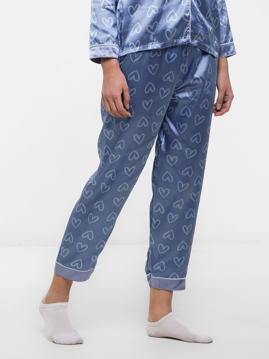 Женская атласная пижама с принтом сердец, цвет синий
