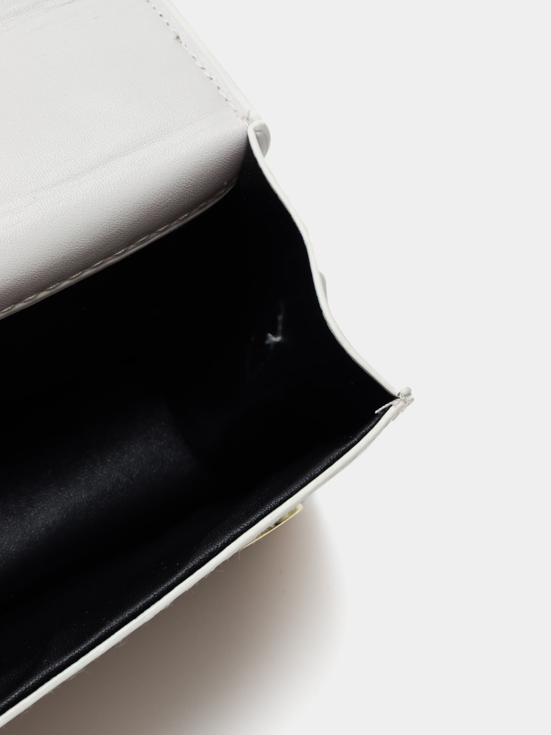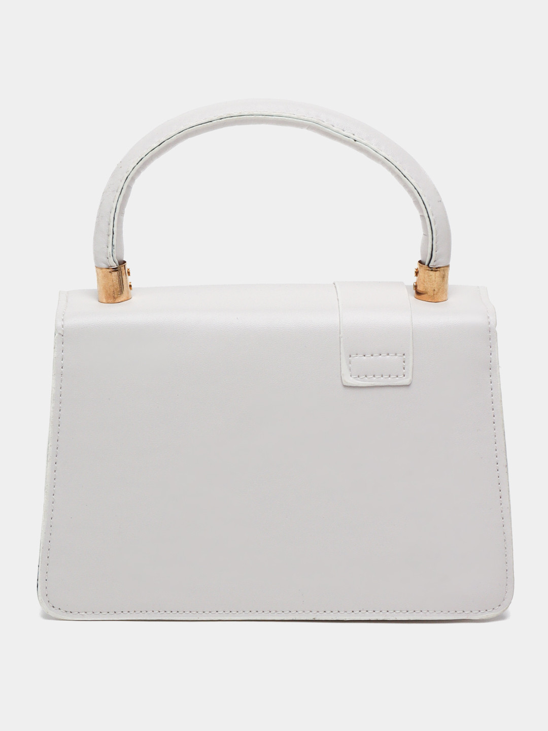 Компактная женская сумка в лаконичном стиле станет идеальным дополнением к вашему образу. Элегантный дизайн с фигурной пряжкой и золотистой фурнитурой добавит шарма как повседневному, так и вечернему наряду. Удобная короткая ручка позволяет носить сумку в руке.
