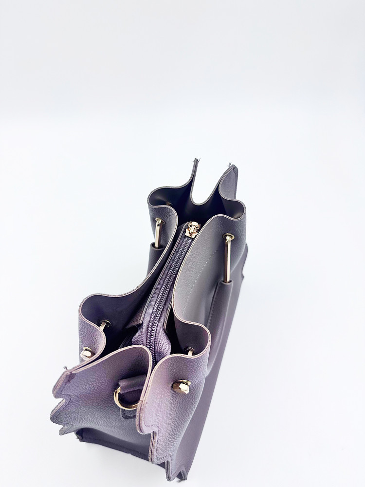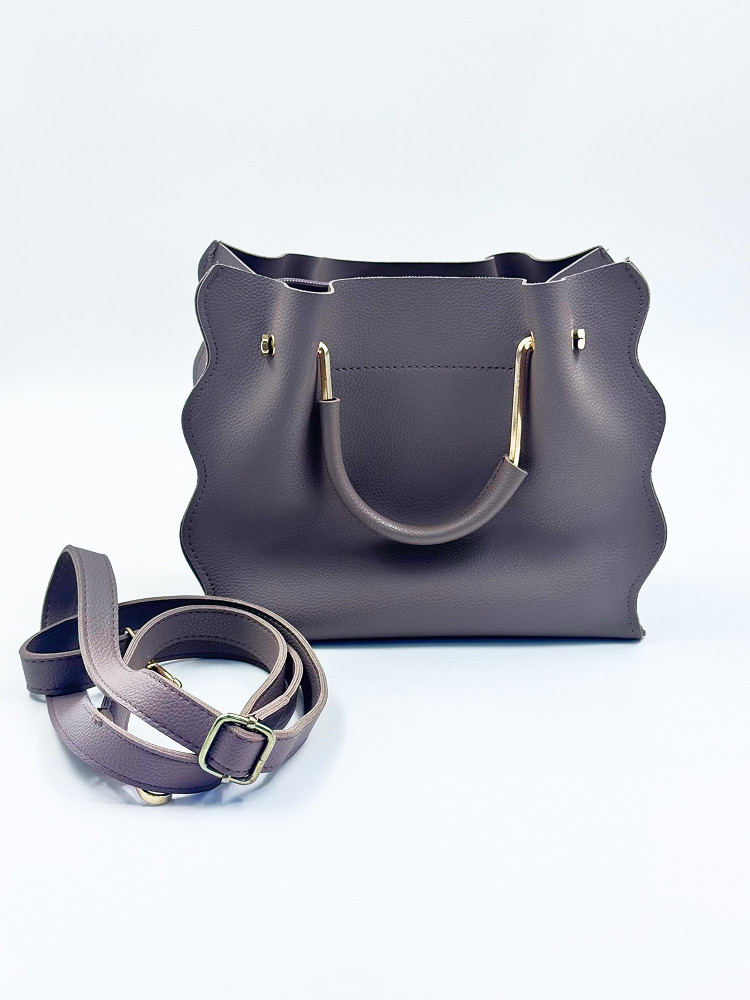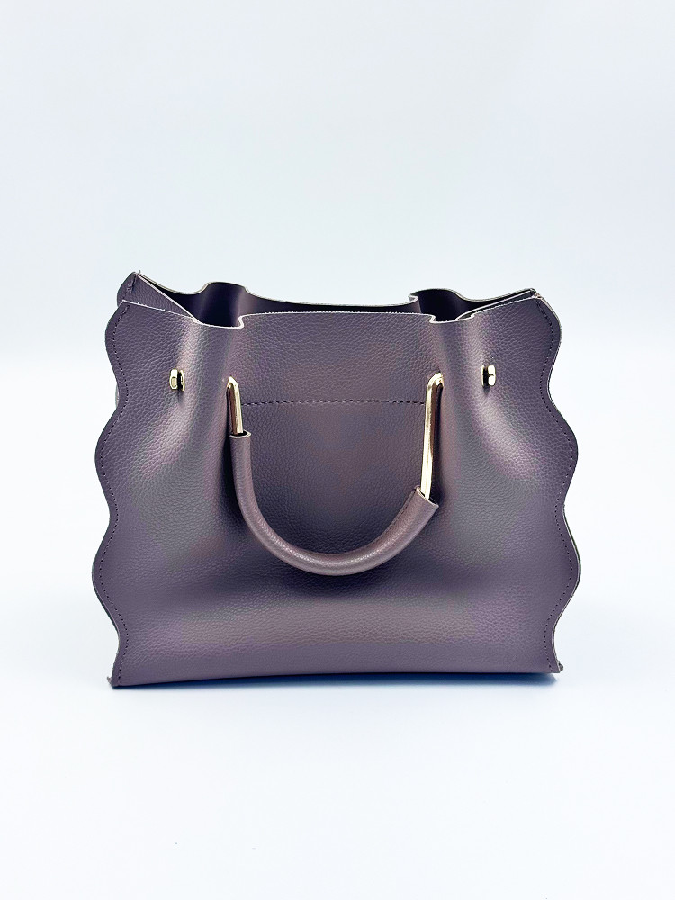 Стильная женская сумка-тоут — это идеальное сочетание элегантности и функциональности. Уникальный волнообразный дизайн по краям делает её настоящим акцентом в образе. Универсальный приглушённо-сиреневый цвет подойдёт как для повседневных, так и для деловых или вечерних выходов. Удобные ручки с золотистой фурнитурой придают изделию изысканный вид.