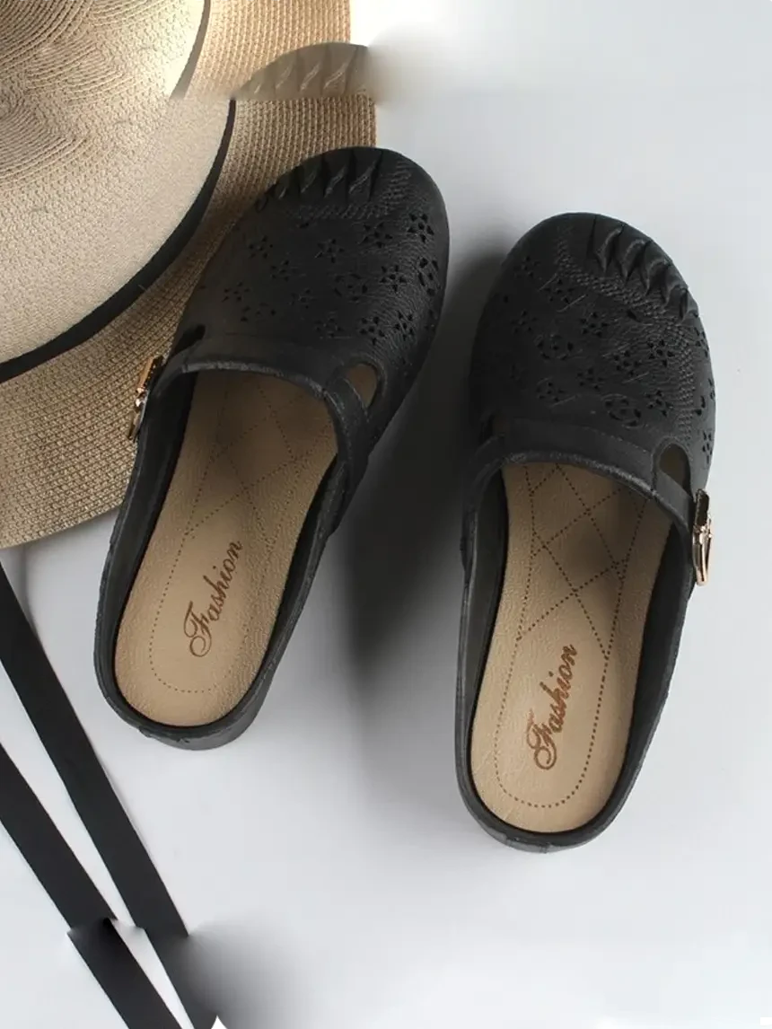 Удобные и стильные сабо для повседневной носки. Мягкая стелька, закрытый мыс и ажурная перфорация обеспечивают комфорт и вентиляцию в течение всего дня. Пряжка сбоку добавляет декоративный акцент и регулирует посадку.