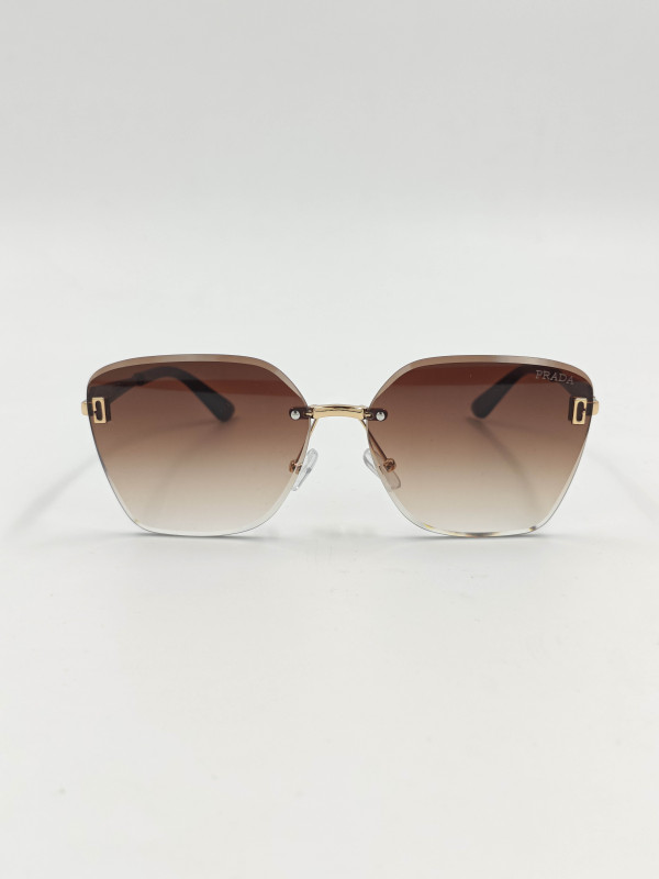 Лёгкие безободковые солнцезащитные очки Prada с градиентными линзами и изысканным дизайном — идеальный акцент на стиль.