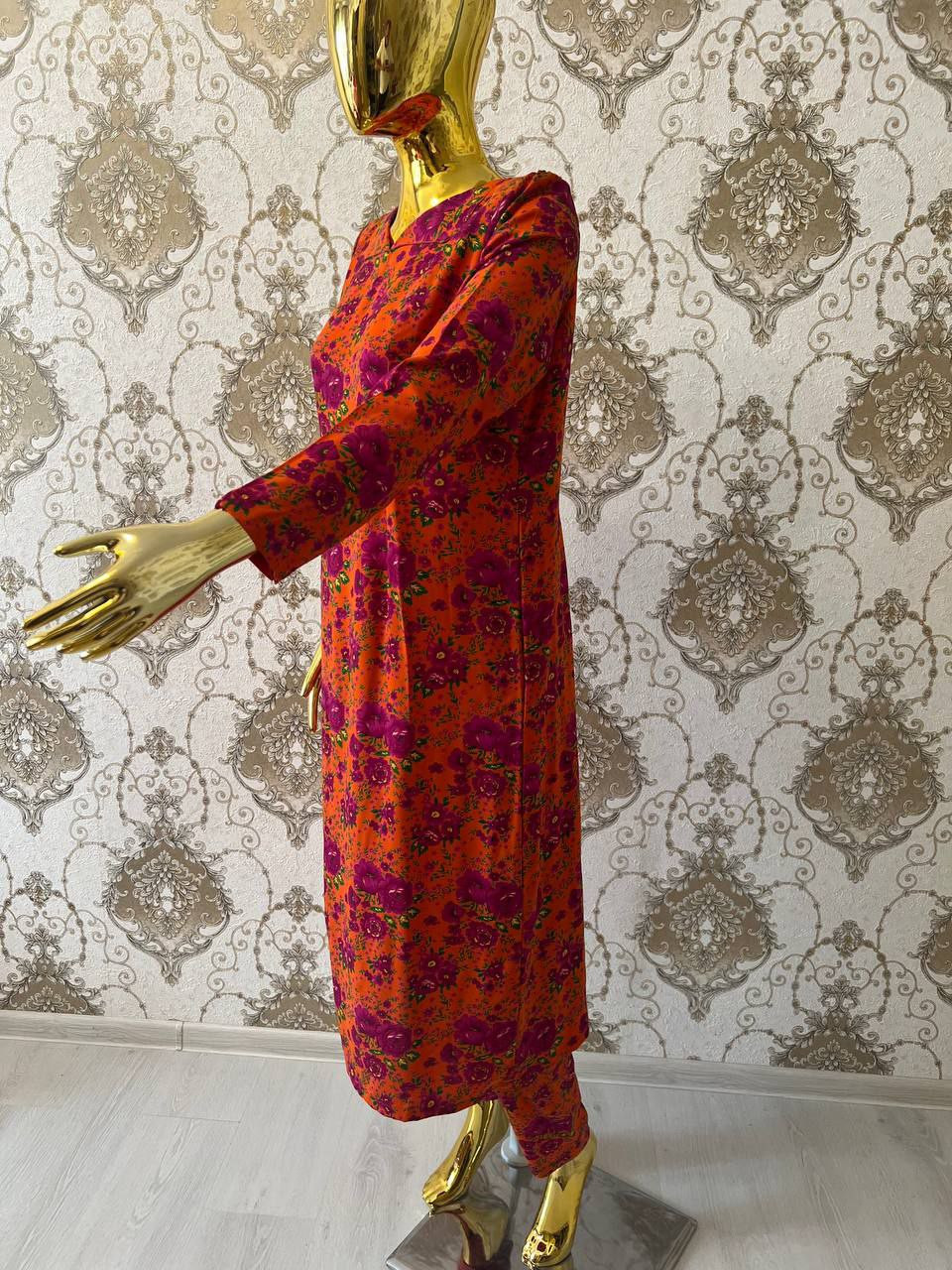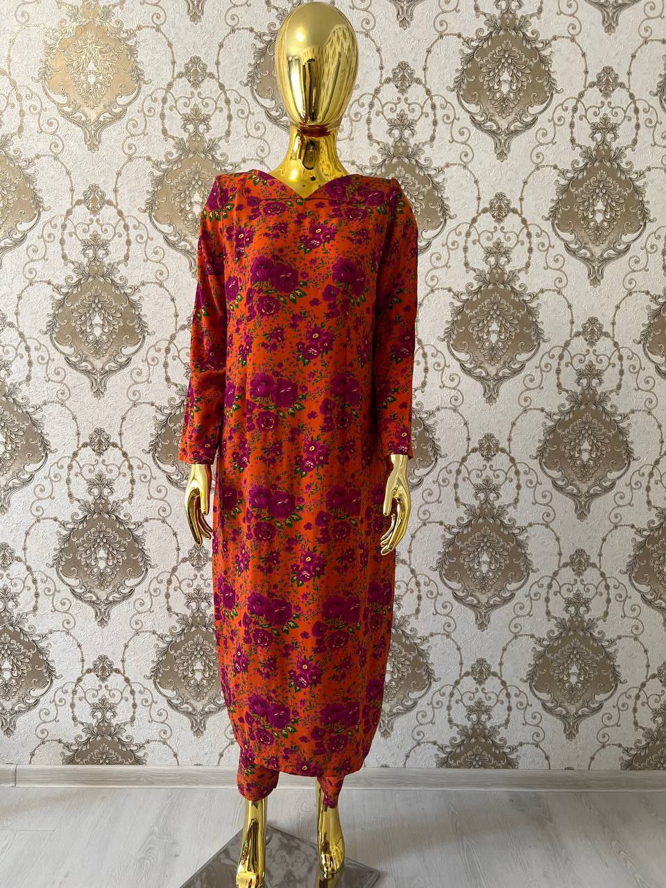 Это платье — истинное воплощение домашнего уюта и нежной женственности, где каждый узор и каждая деталь призваны дарить радость. Оно сочетает в себе красоту традиционных мотивов с невероятной мягкостью ткани, создавая идеальный образ для ваших домашних ритуалов.