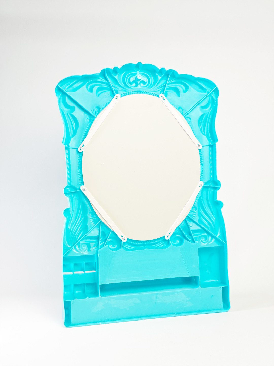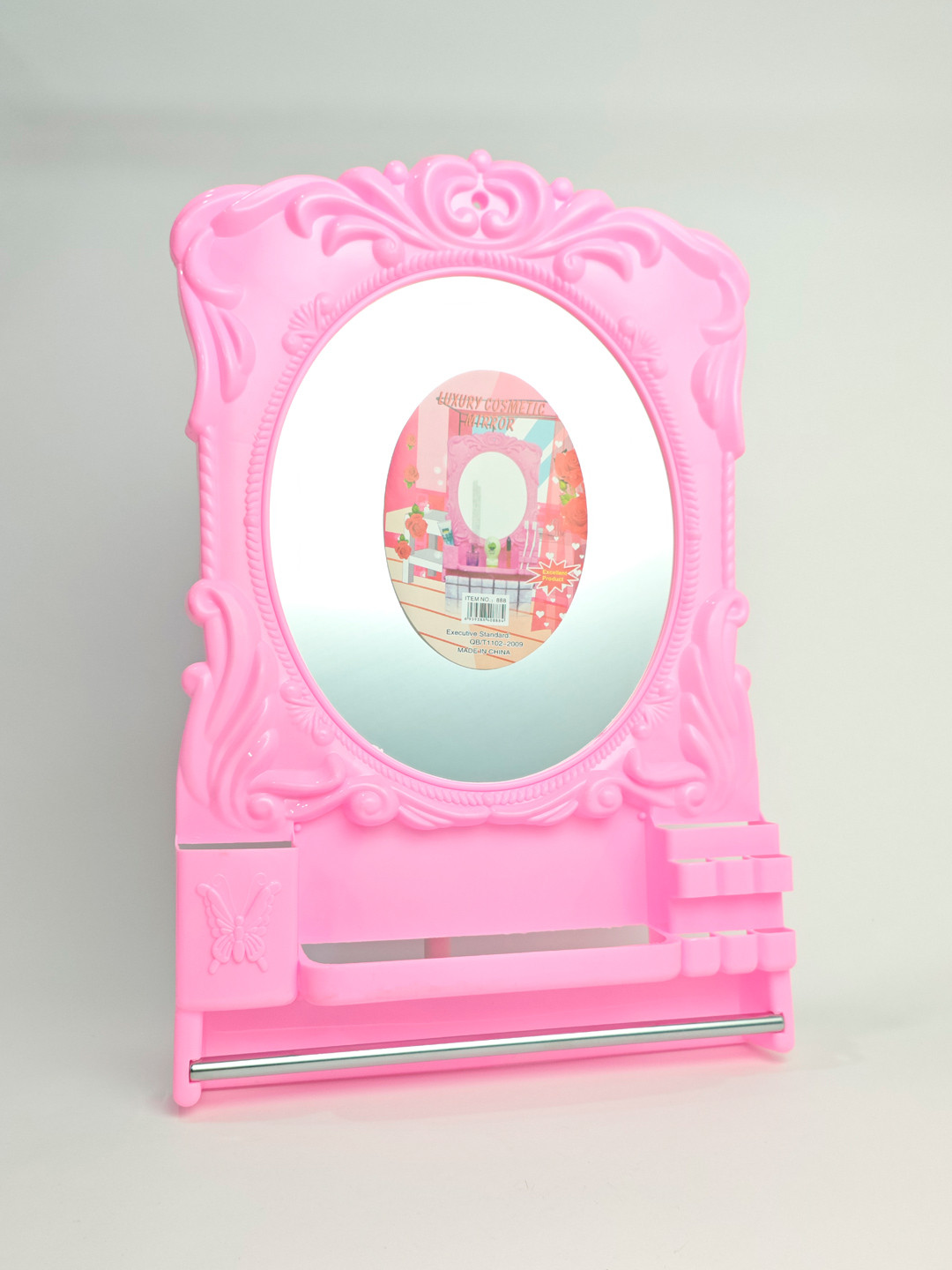 Элегантное и функциональное ванное зеркало для косметики, выполненное в стильной розовой рамке с декоративным орнаментом. Оснащено удобными отделениями для хранения аксессуаров и косметических средств.