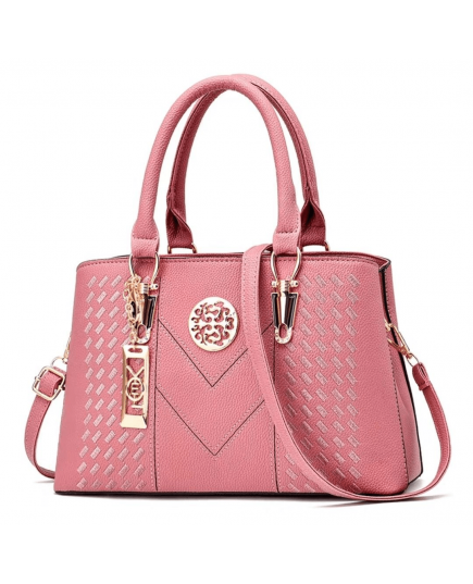 Элегантная женская сумка в нежно-розовом цвете с изысканным дизайном, дополненным декоративной вышивкой и стильными металлическими элементами золотистого оттенка. Модель оснащена удобными короткими ручками и съемным регулируемым плечевым ремнем, что делает её универсальной для разных случаев. Центральное украшение в виде ажурного логотипа придаёт сумке особый шарм, а практичный объем позволяет разместить всё необходимое. Эта сумка станет идеальным аксессуаром для стильного образа в любом сезоне.