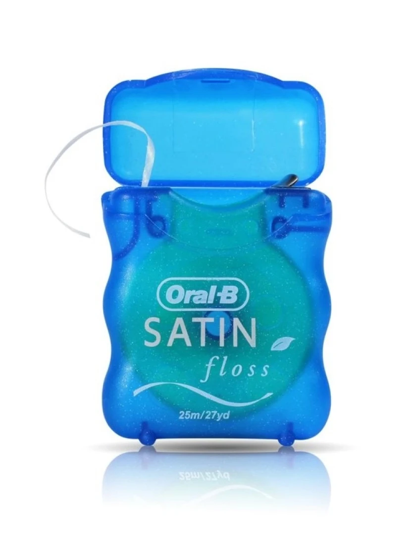 Oral-B Satin Floss — шелковистая зубная нить с мятным вкусом для бережного и эффективного ухода за полостью рта. Идеально скользит между зубами, легко удаляя налёт и остатки пищи, не травмируя дёсны.
