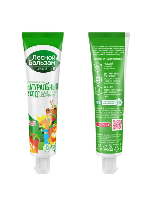 Детская зубная паста "Лесной бальзам" разработана специально для малышей с 2 лет. Содержит 50% сока алоэ, который помогает поддерживать здоровье десен и зубов, а также защищает от бактерий. Паста содержит кальций, который укрепляет зубную эмаль, и экстракт магнолии, который оказывает дополнительное защитное действие.