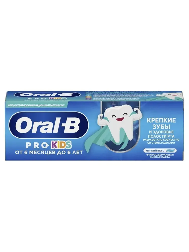 Детская зубная паста Oral-B Pro Kids разработана специально для детей от 6 месяцев до 6 лет. Разработанная совместно со стоматологами, она помогает предотвратить кариес, защищая молочные зубы от налёта. Детская зубная паста содержит соответствующий возрасту уровень фтора, который помогает защитить эмаль. Формула зубной пасты безопасна для самых маленьких детей и не содержит SLS.