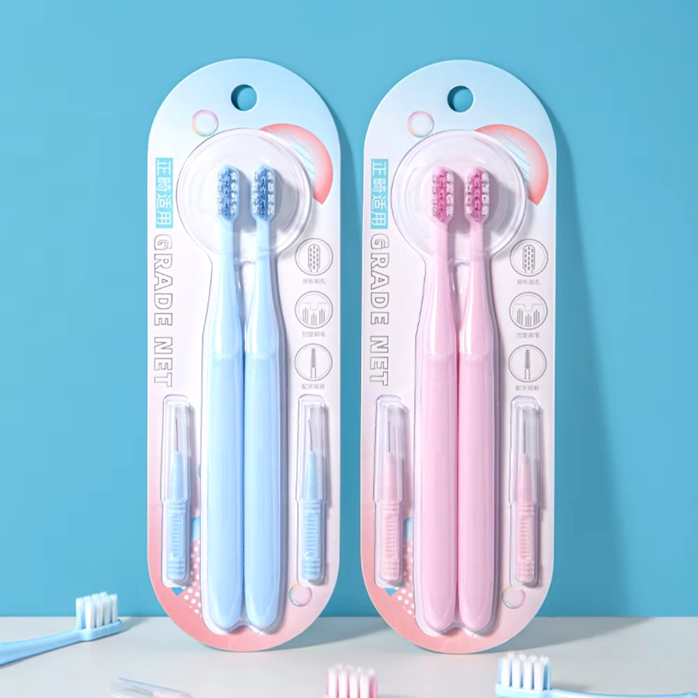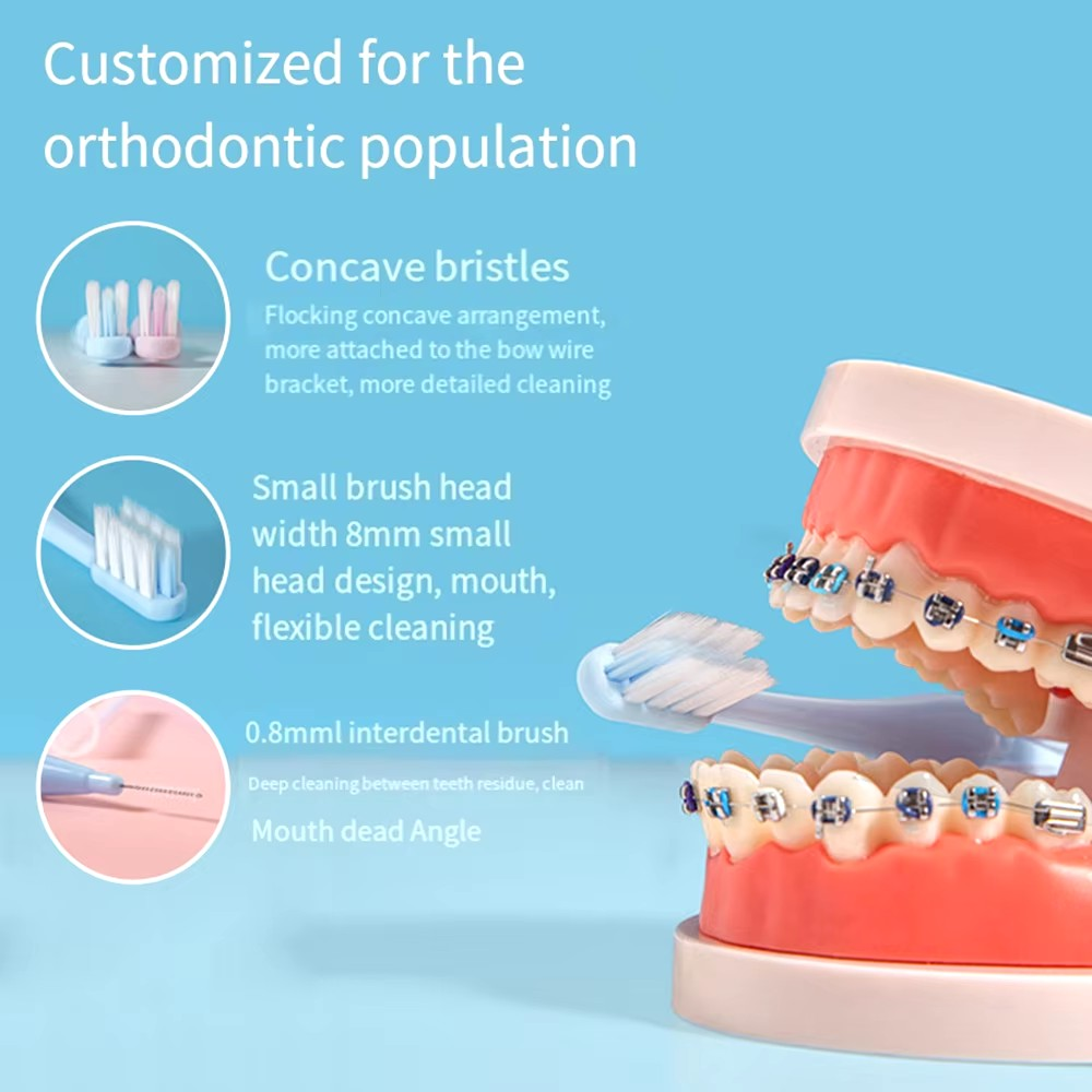 Цвет: розовый Материал: пластик Количество: 2 шт. В комплекте поставки: Ортодонтическая зубная щетка с мягкой щетиной - 2 шт. Межзубная щетка - 2 шт.